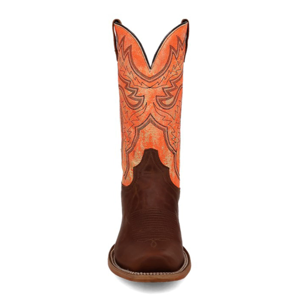 Command attention in the neon orange Marchi cowboy boot from Dan Post. This vibrant 13- inch boot features an ultimate flex insole, cutter toe and heel, and leather outsole. Embrace the wow factor and make a statement with every step.