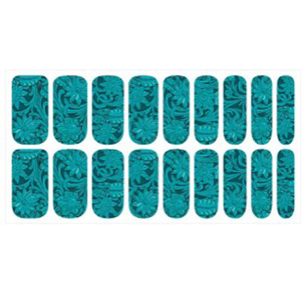 Spice up your outfits by having these beautiful Saddle Up Teal real nail polish strips that feature their iconic tooled leather design in this stunning teal color, that will look amazing on your nails! Coming with 18 strips in 9 different sizes to perfectly fit your nails.