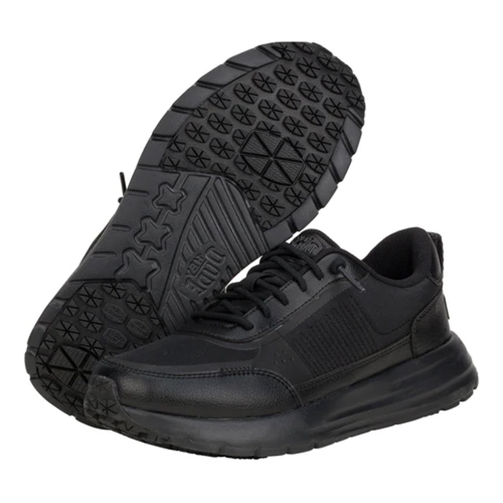 Experience all-day comfort and safety with Hey Dude Men's Sirrocco Alta Work CE slip resistant black shoes. Designed for durability and slip resistance, these shoes provide reliable support on various work surfaces. Their lightweight construction ensures your feet stay comfortable throughout long shifts, while the CE certification guarantees quality and protection. Ideal for demanding work environments, these shoes help you stay steady and focused every step of the way.