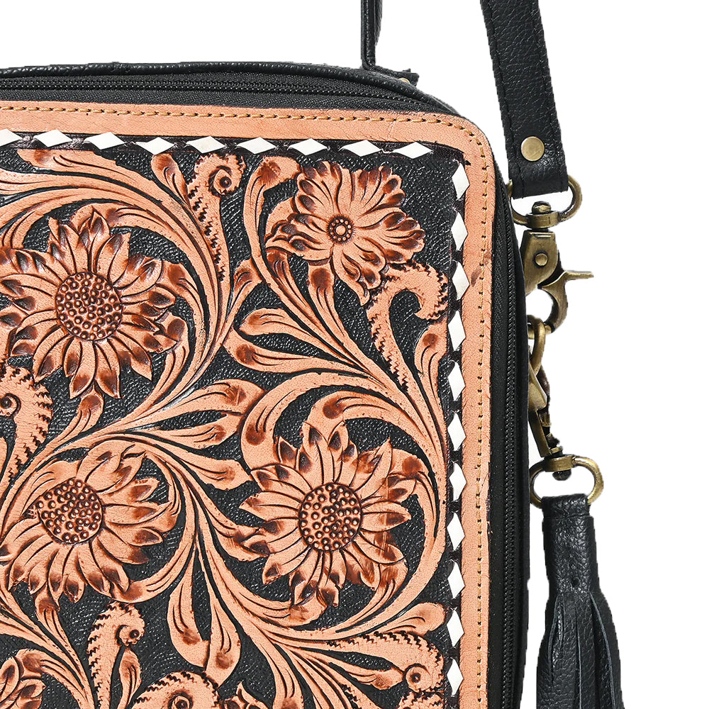 This American Darling Crossbody for women blends classic Western charm with a fresh, stylish vibe. Crafted from soft, hand-tooled genuine cowhide leather, it’s both high-quality and eco-friendly thanks to vegetable tanning. The full-grain leather is supremely supple and develops a unique patina over time. Comes in sleek Black for a look that’s as timeless as it is trendy.