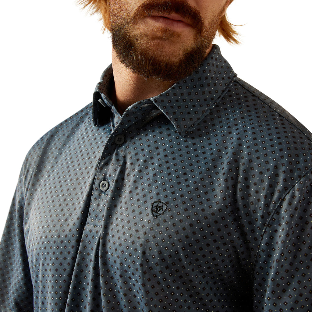Elevate your style with the Ariat Men's AriatTEK Charger Newsboy Blue polo shirt. Crafted with AriatTEK fabric, this shirt combines performance with comfort. Stay cool and dry all day long. Perfect for any casual or sporty occasion.