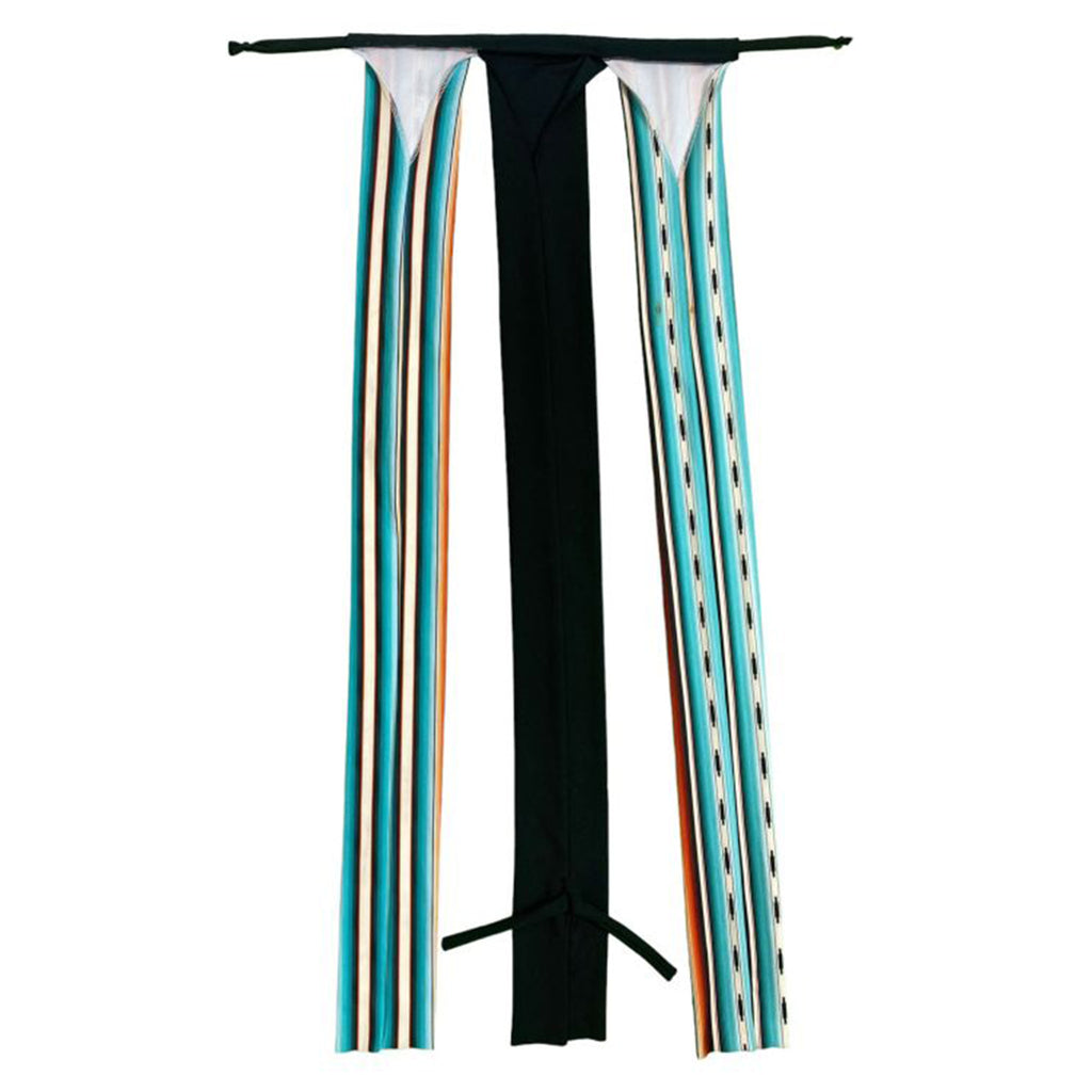 This teal serape tail bag is made of stretchy Lycra material and is designed to protect hair from dirt and breakage. Designed with 3 sleeves so your horses' tail can be braided in; one black sleeve, along with two serape print sleeves. This bag separates hair to eliminate damage while protecting hair from wind, sun, and dirt year-round.