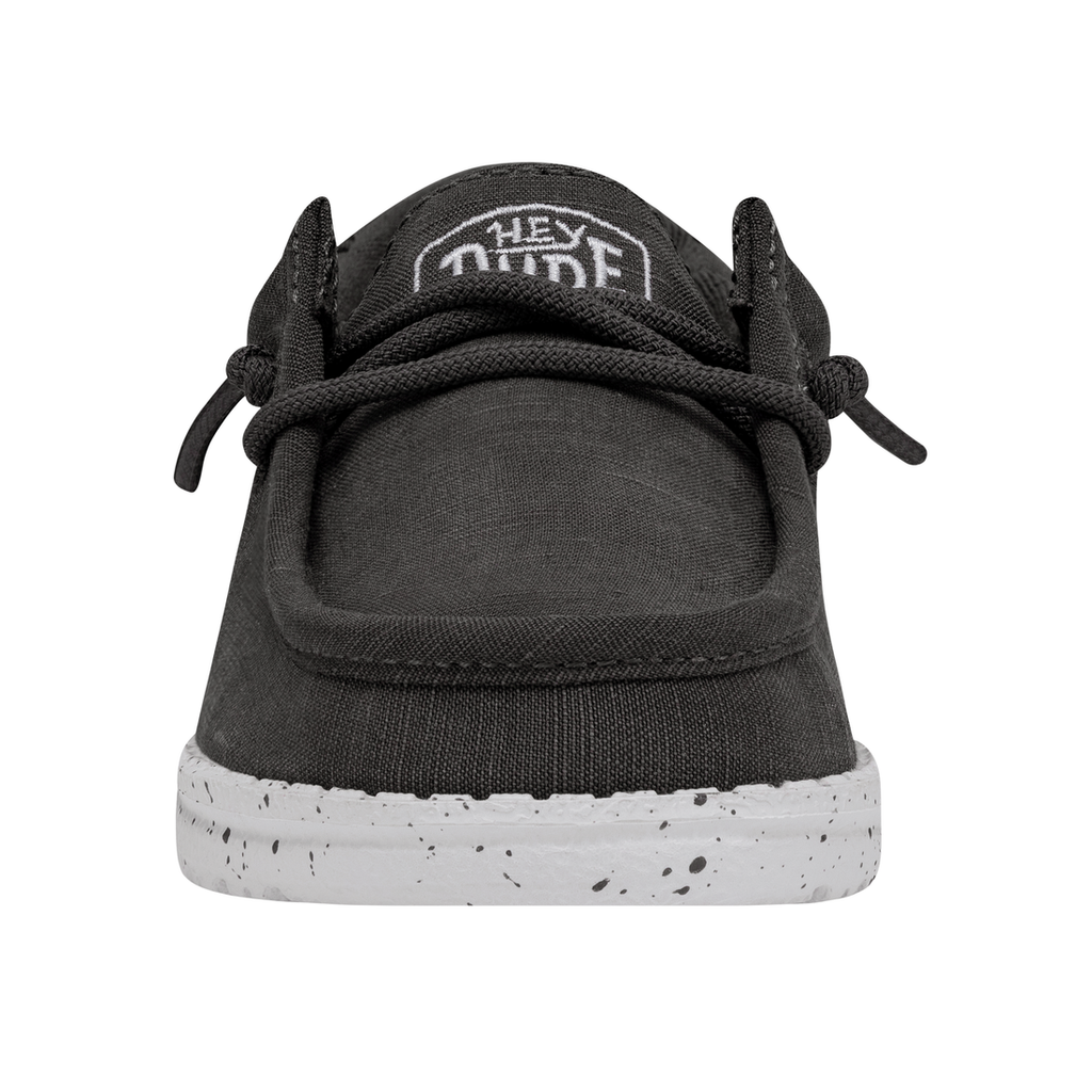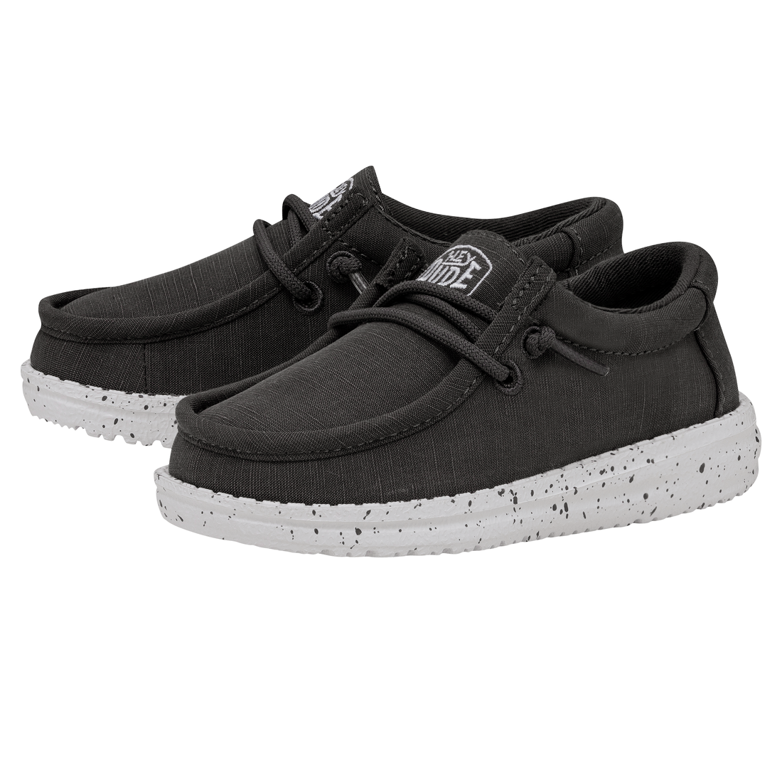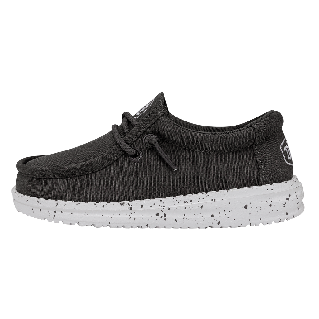 The Wally Toddler Slub Canvas, Dark Grey, is the perfect summer shoe for your little one. A great color for any little one and perfect to wear as a team color to support big bro or big sis's team! The Wally Toddler Slub Canvas collection has all the tried-and-true construction you know and love, but is is extra lightweight for those little ones. It features a durable slub-woven upper and lined with soft cotton for durability and comfort. This shoe features an ultralight outsole with no-tie, elastic laces and a cushioned ankle collar for extra support. Made just right for spirited little feet.