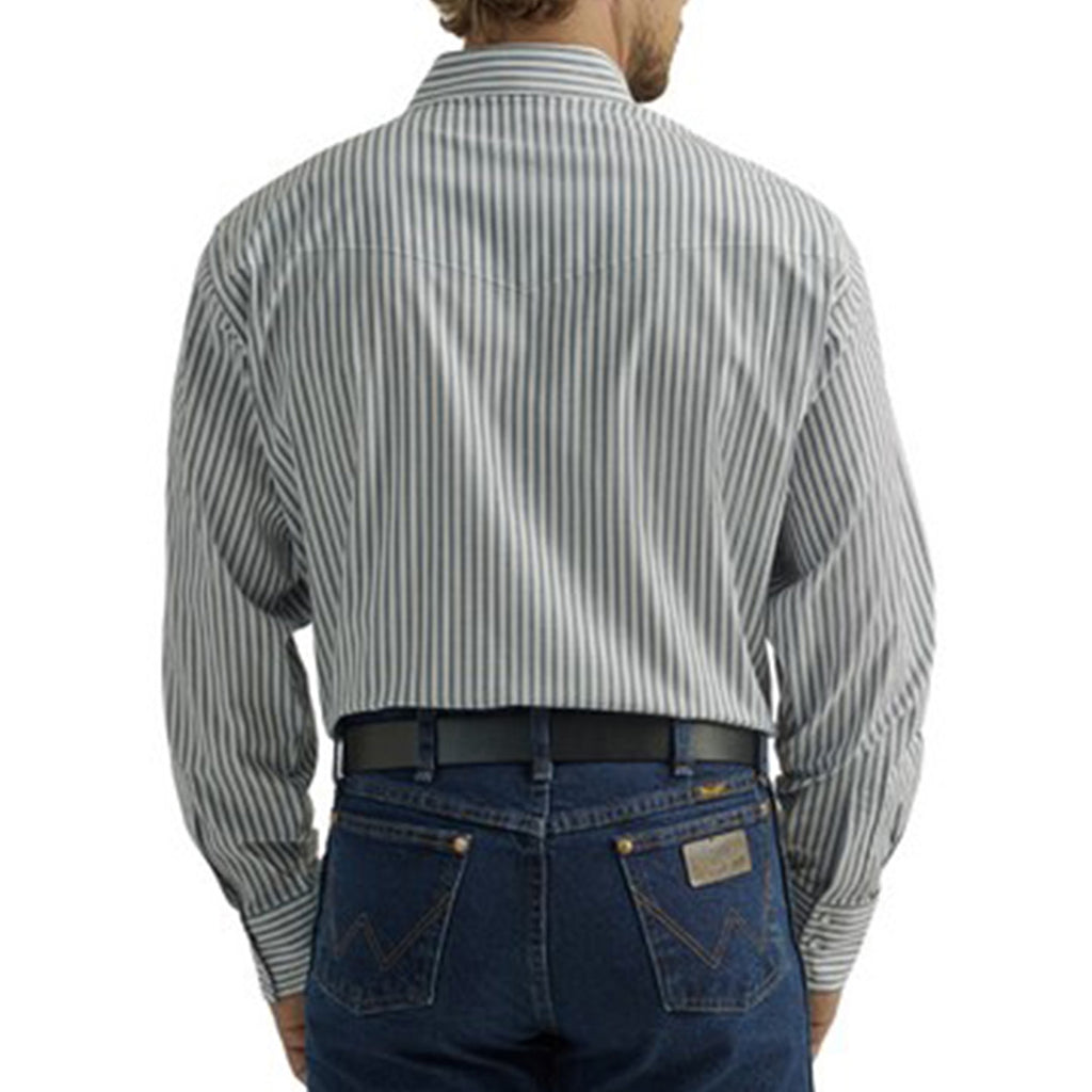 Wrangler Men's Blue & Charcoal Pin Stripe Pearl Snap