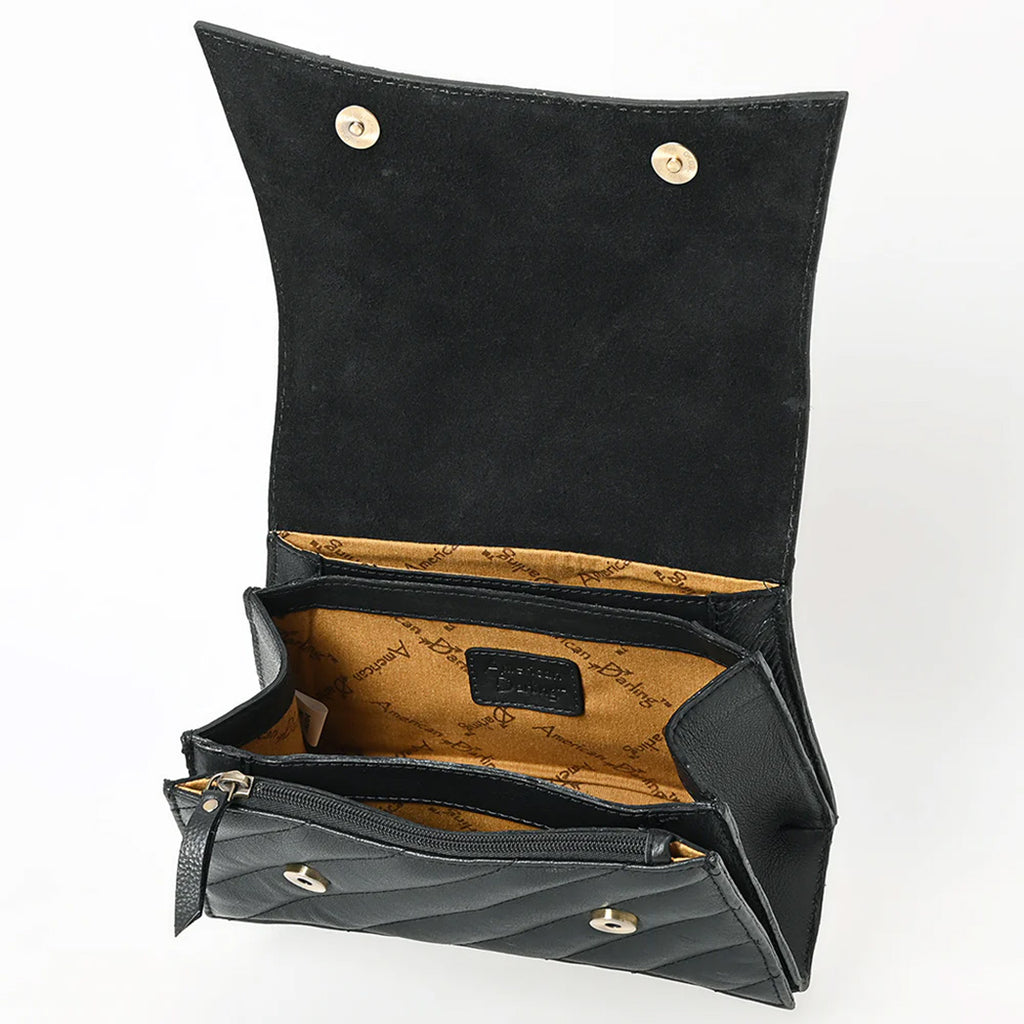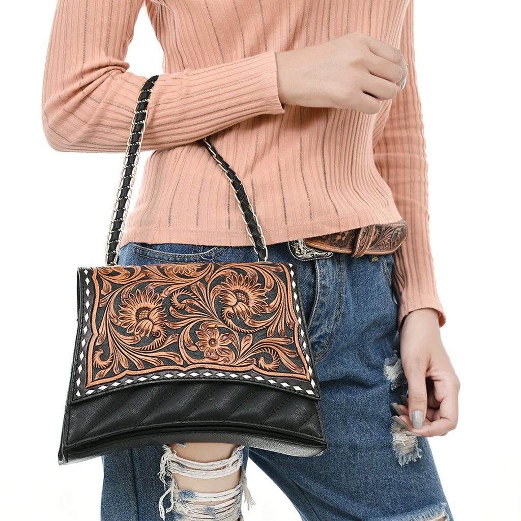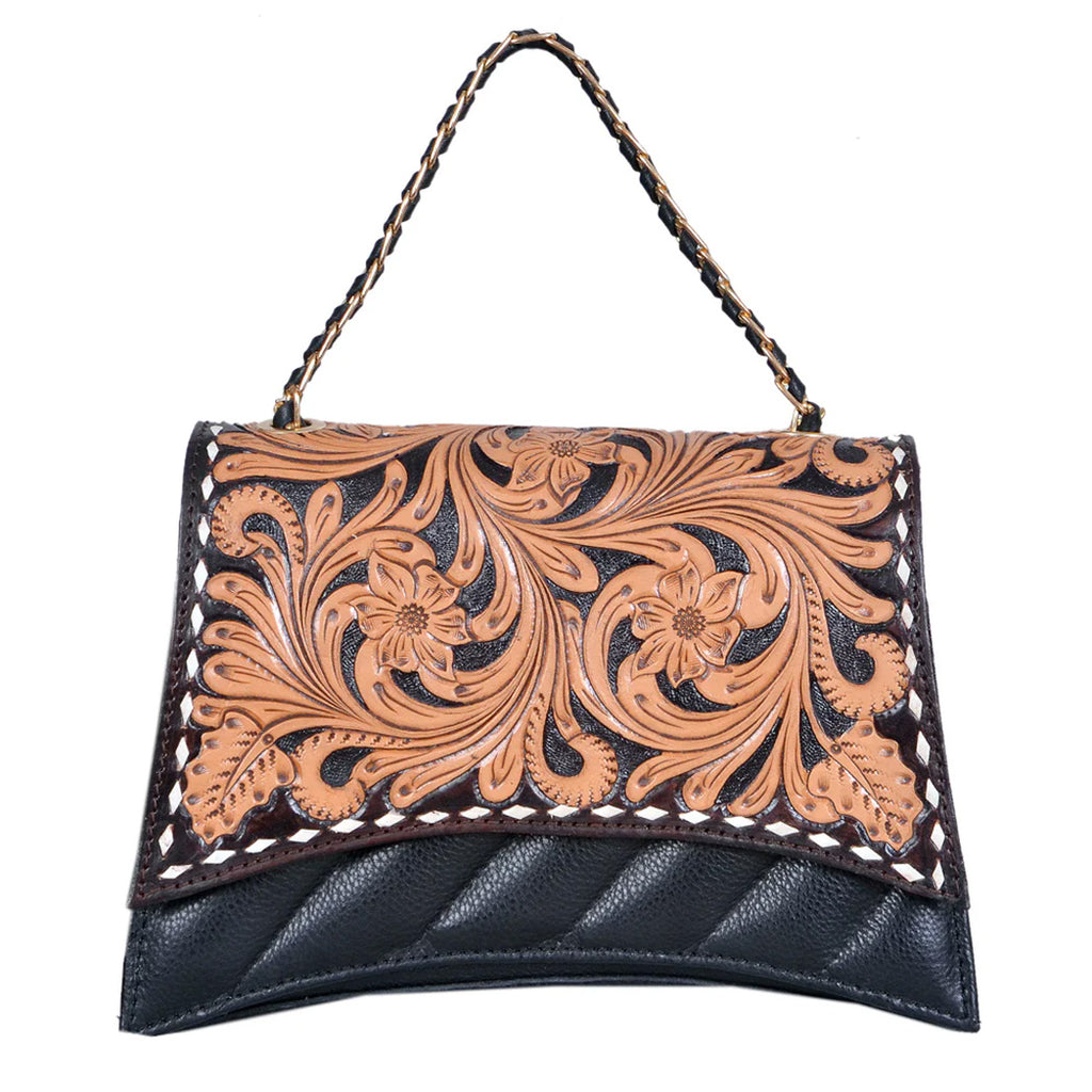 The American Darling Black Puff/Tooled Flap Purse offers a perfect blend of timeless Western craftsmanship and contemporary style. Featuring detailed tooling and a distinctive puffed flap, this purse stands out while providing ample space for your essentials. Its sleek black design makes it a versatile accessory that enhances any outfit, whether for daily use or special occasions. Make a statement with this elegant and functional purse.