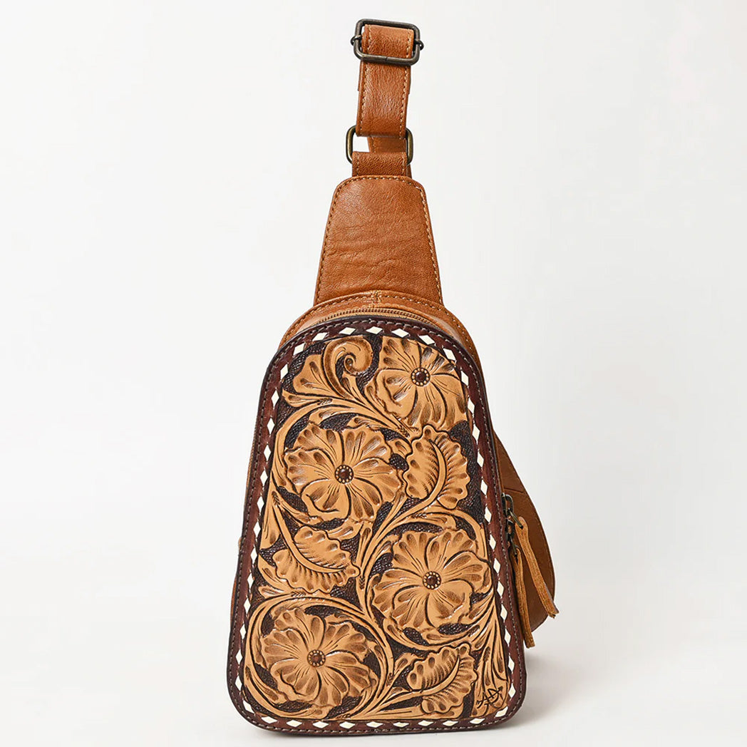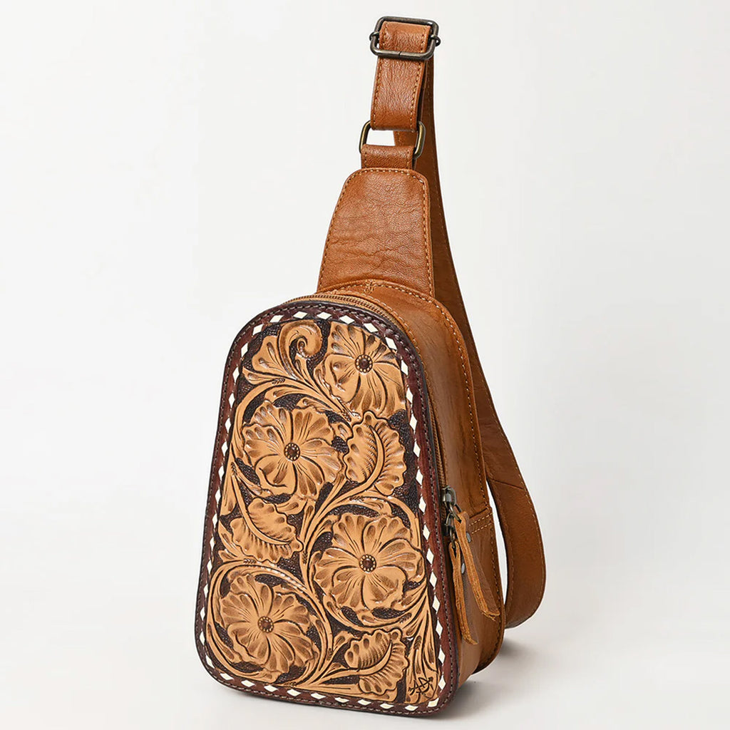 The American Darling Brown Floral Tooled Sling Bag offers a perfect blend of style and function. Featuring beautifully detailed floral tooling on durable brown leather, this sling bag adds a touch of rustic elegance to your look. Its convenient size and adjustable strap make it ideal for hands-free carrying, keeping your essentials secure and within reach. Whether for daily use or special outings, this bag is designed to complement your wardrobe with timeless charm and practical ease.