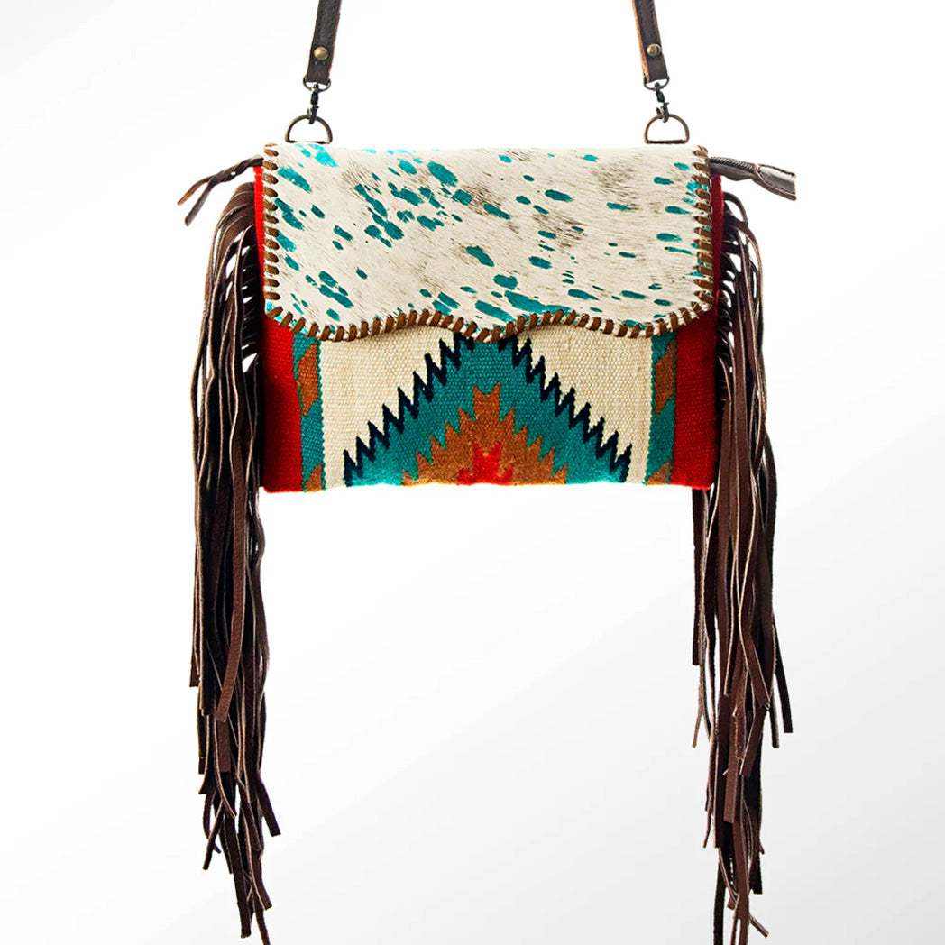 Add a touch of wild charm to your outfit with the American Darling Hide Fringe Blanket Flap Purse. This playful purse features a cozy blanket-inspired flap and fringed details that bring a fun, rustic vibe wherever you go. Perfect for carrying your essentials with a dash of Western flair!