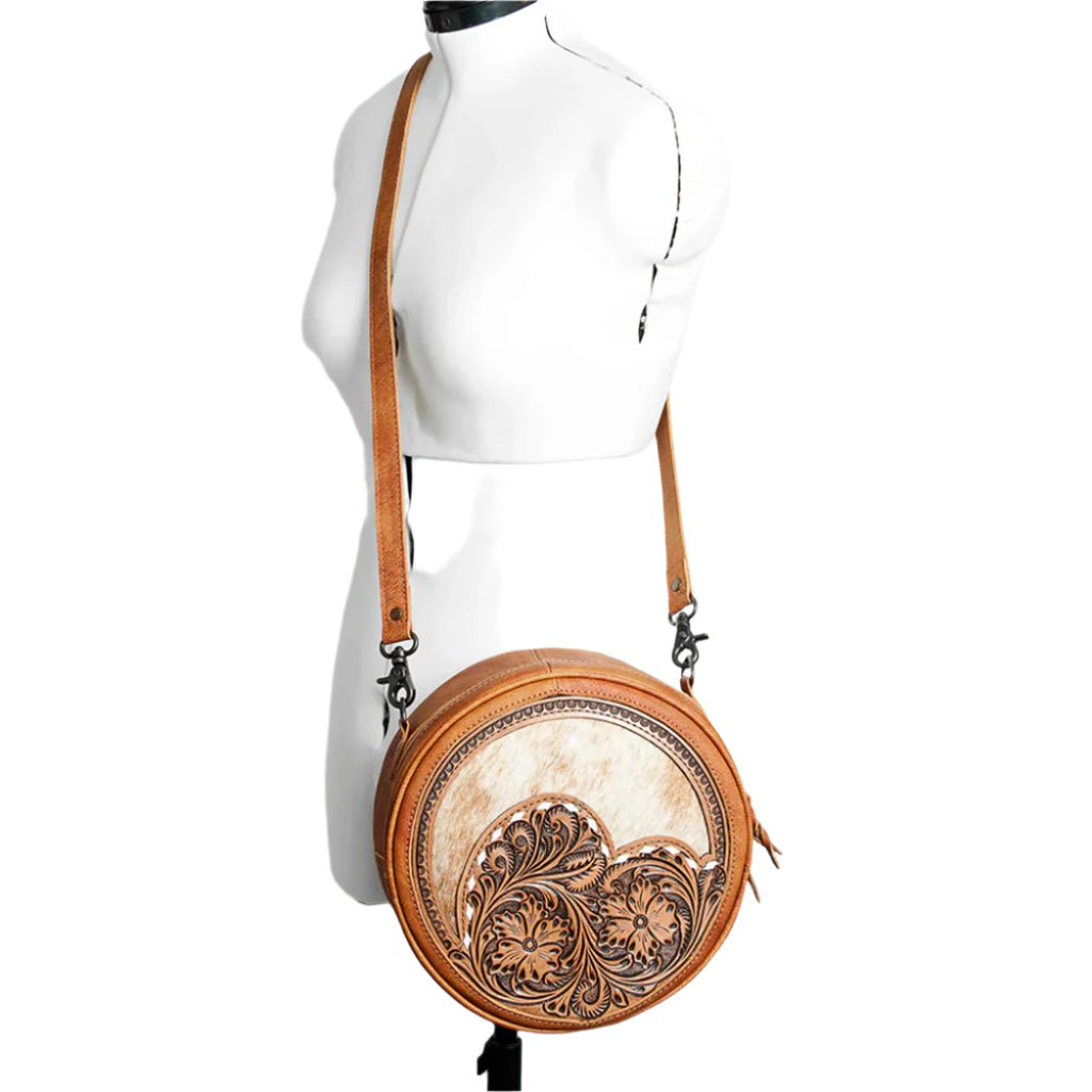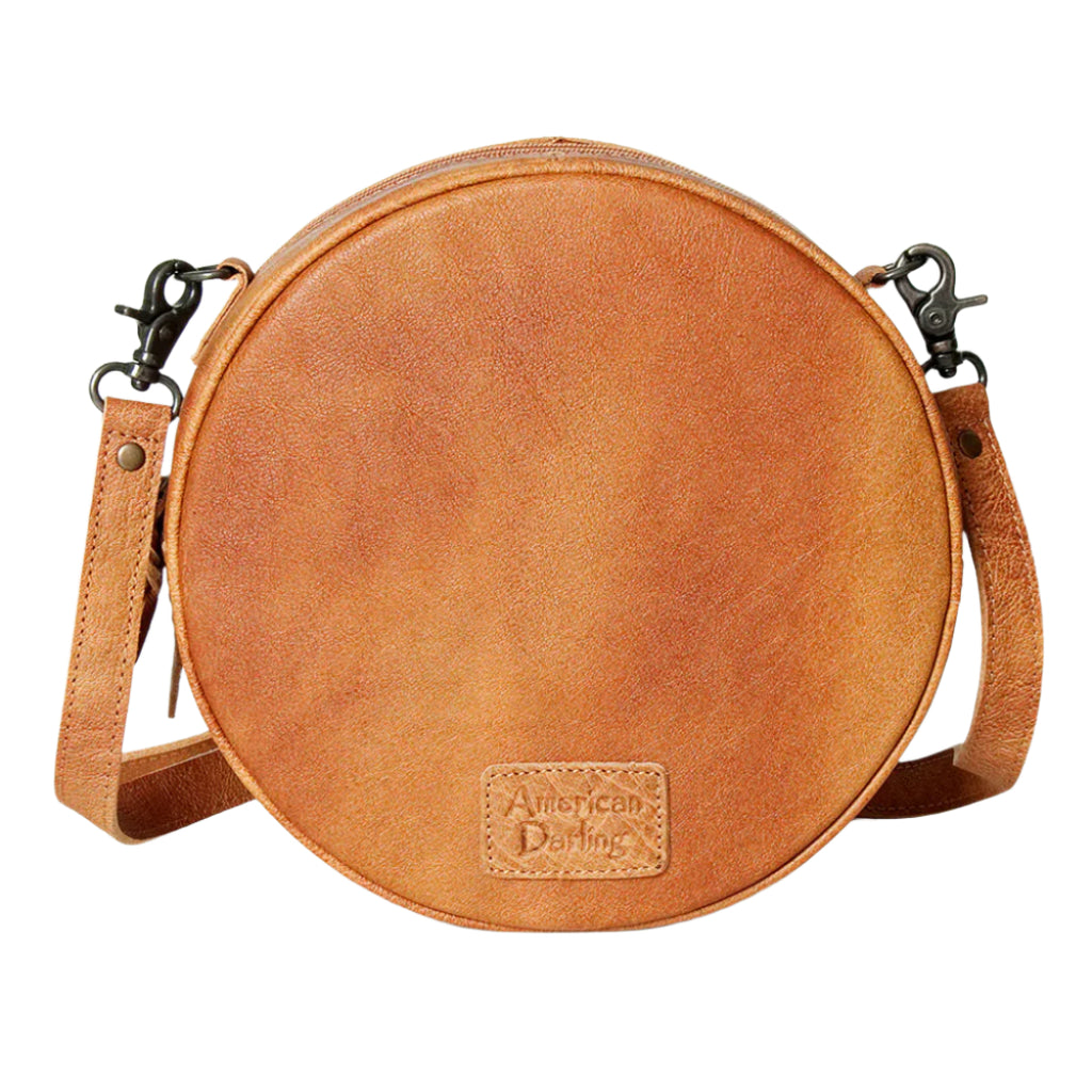 Crafted from rich tan hide, the American Darling Canteen Purse combines timeless elegance with practical design. Its distinctive shape offers ample space for essentials while maintaining a refined silhouette. Perfect for those who appreciate classic style with a modern edge, this purse elevates any outfit with understated sophistication.