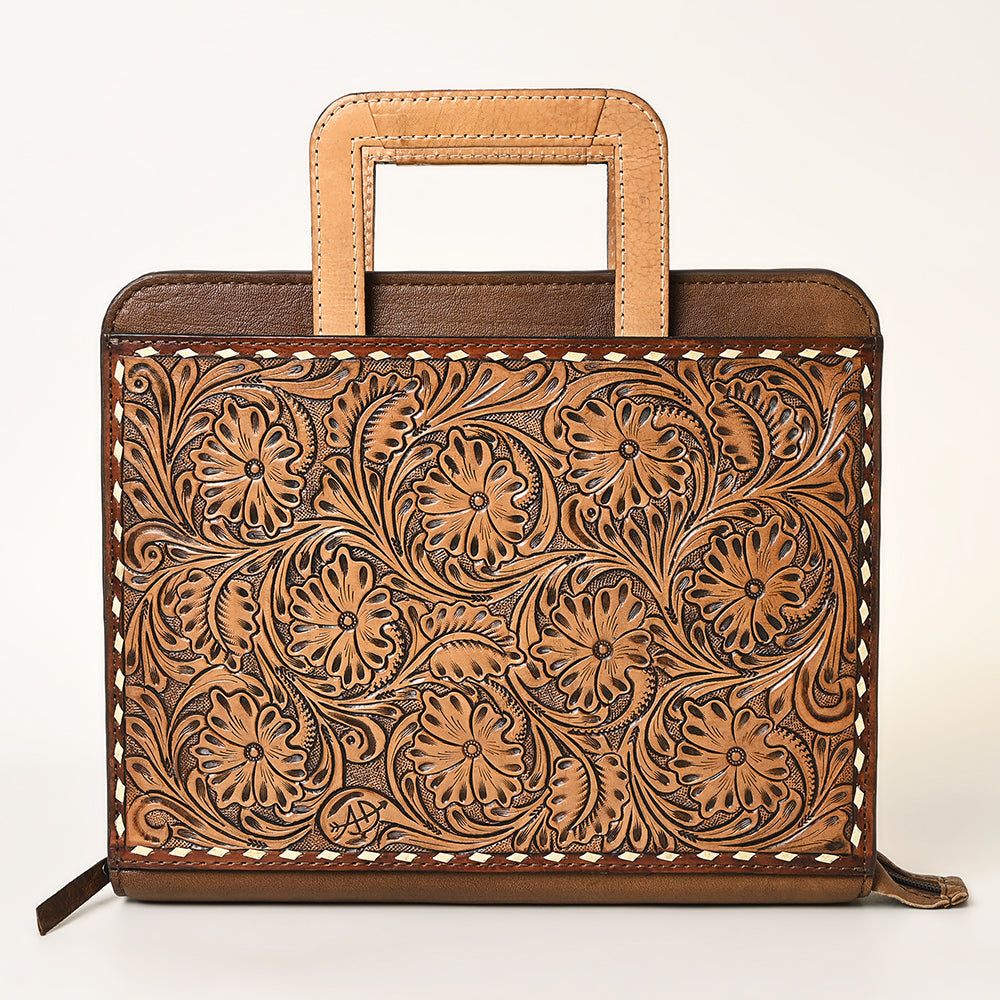 This American Darling briefcase combines timeless Western craftsmanship with refined elegance. Hand-tooled leather features intricate floral detailing that adds character and visual interest to a classic silhouette. Designed for the discerning professional, it offers ample space for documents, a laptop, and daily essentials while maintaining a polished appearance. The durable leather construction ensures this piece will age beautifully and serve you for years to come.