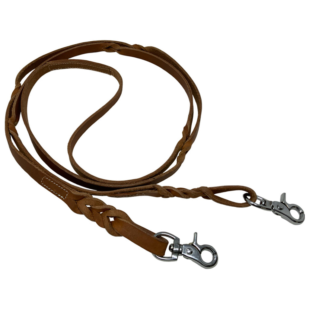 Shiloh's premium Showman Twist Braid Leather Reins were crafted from the finest quality Argentina cow leather, these reins boast a unique twist braid design that not only enhances grip but also adds an aesthetic appeal to your riding gear. The intricate braiding ensures a sturdy construction, providing a comfortable and secure hold for riders.