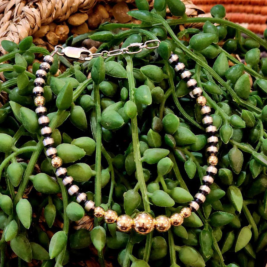 This Navajo pearl bracelet merges the lustrous beauty of pearls with warm gold accents, creating a piece that balances classic elegance with southwestern heritage. The combination of materials offers versatility for both casual and formal occasions.