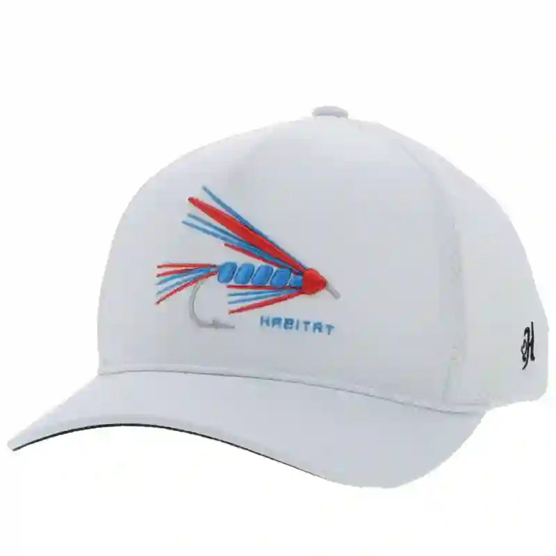 Hooey Mid Profile White Cap-Fly Fishing Logo
