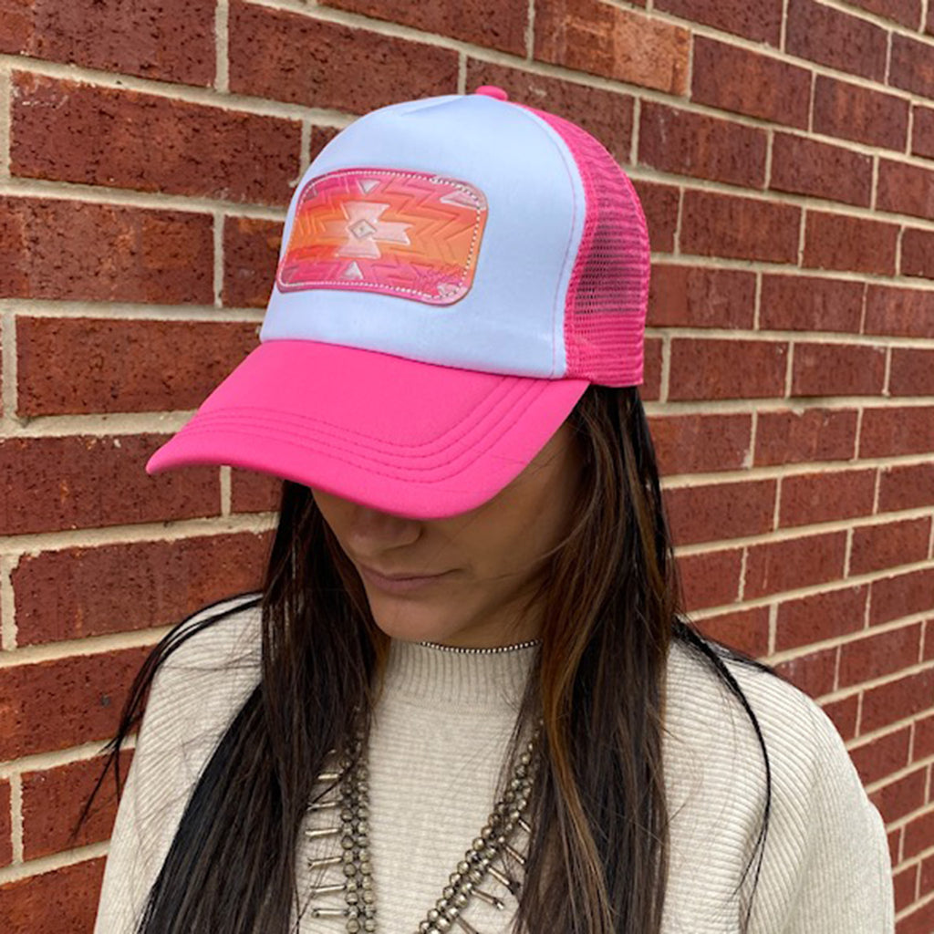 McIntire Saddlery Pink Foam Aztec Leather Patch Cap