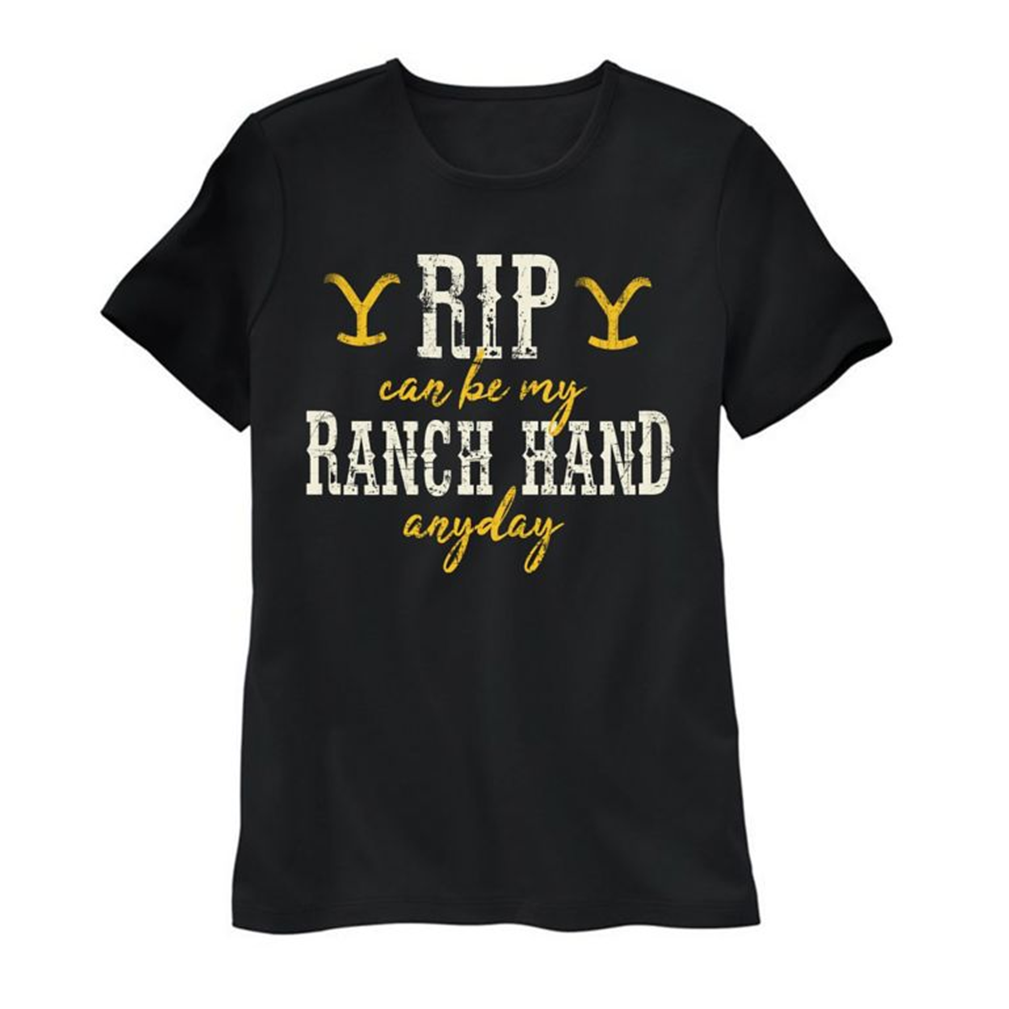 Lets be honest ladies, we can all agree that Rip can be our ranch hand any day! This black short sleeve features the phrase "Rip can be my ranch hand any day," along with two famous yellow Yellowstone "Y"s on both sides.