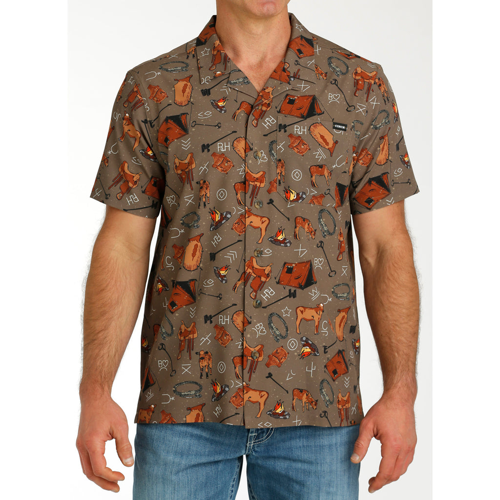 Cinch creates fun printed camp shirts. Express yourself in comfort and your favorite jeans. This camp shirt makes a statement and shows off your personality. As the weather warms up, this shirt will keep you comfortable indoors or outdoors.
