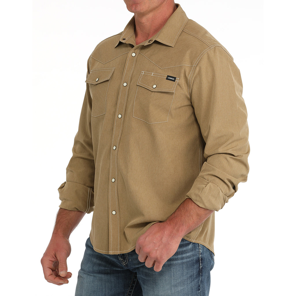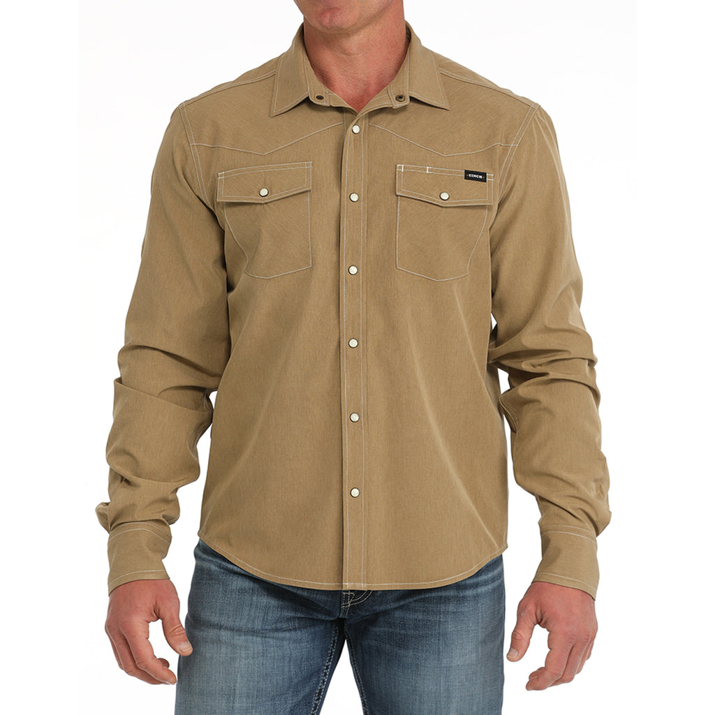 Stay cool and comfortable on your next camping adventure with the Cinch men's brown Arenaflex Camp shirt. Made with lightweight and breathable fabric, this shirt will keep you feeling fresh all day long. With its classic brown color and stylish design, you'll be both comfortable and fashionable on the trail.