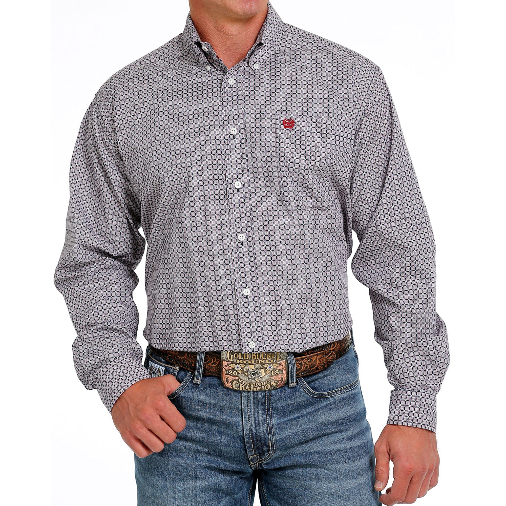 Perfect for wearing to the office or out for a date night, this classic cotton plain weave by CINCH has a multicolor geometric print, an open left front pocket with embroidered logo and cream buttons. Pair with blue jeans or khakis for a put-together look.