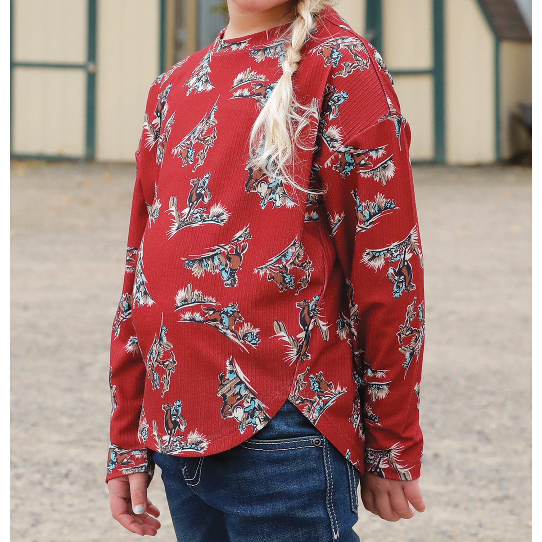 Kid's Cowboy Print Knit Blouse from Cruel Girl