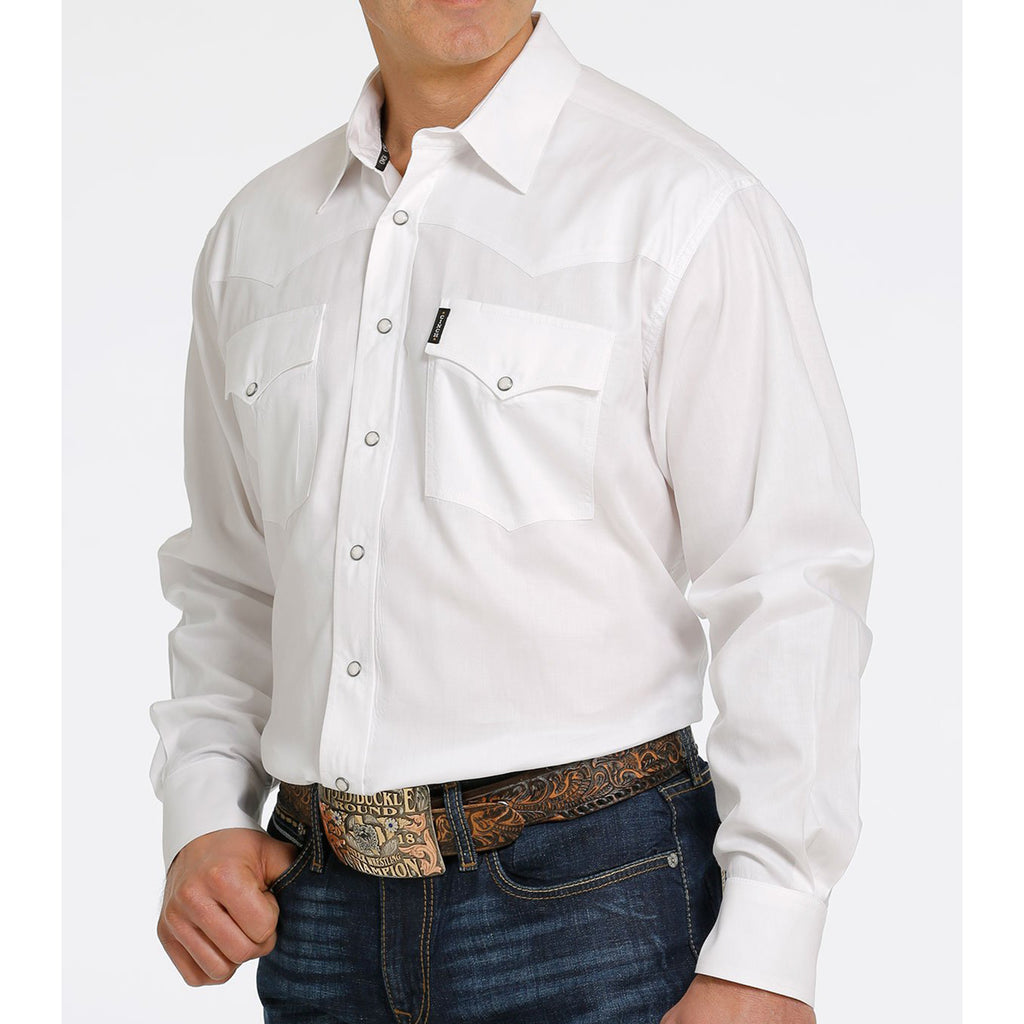 Cinch Men's White Herringbone Pearl Snap Shirt