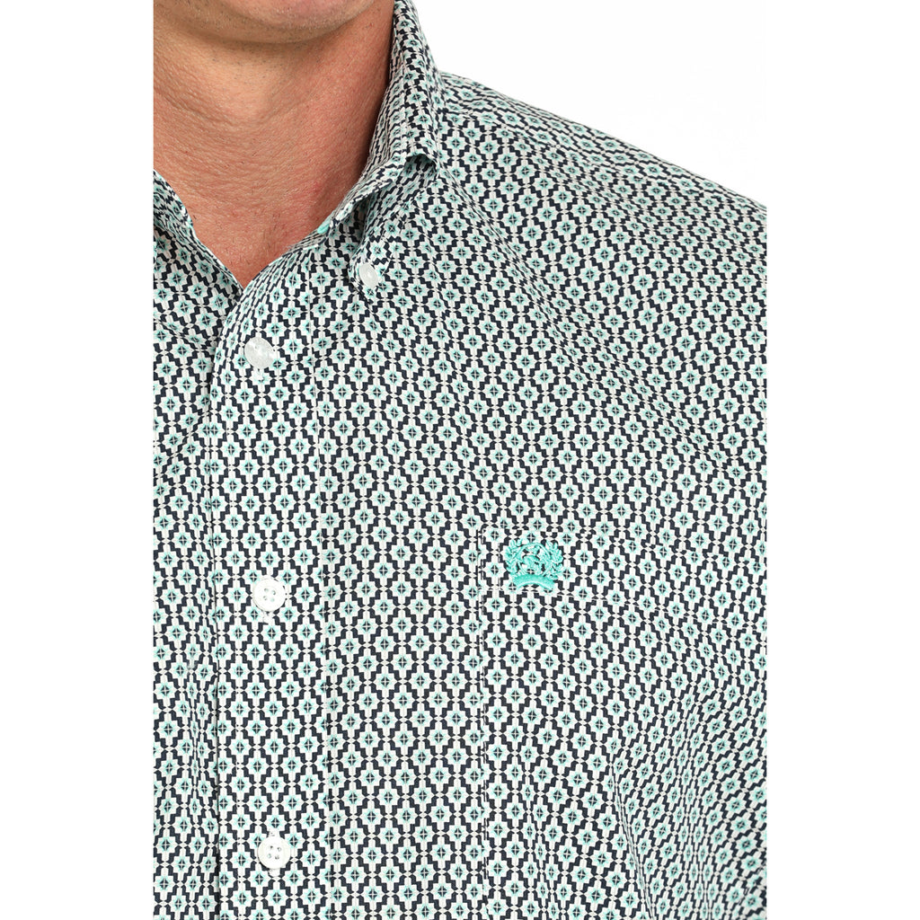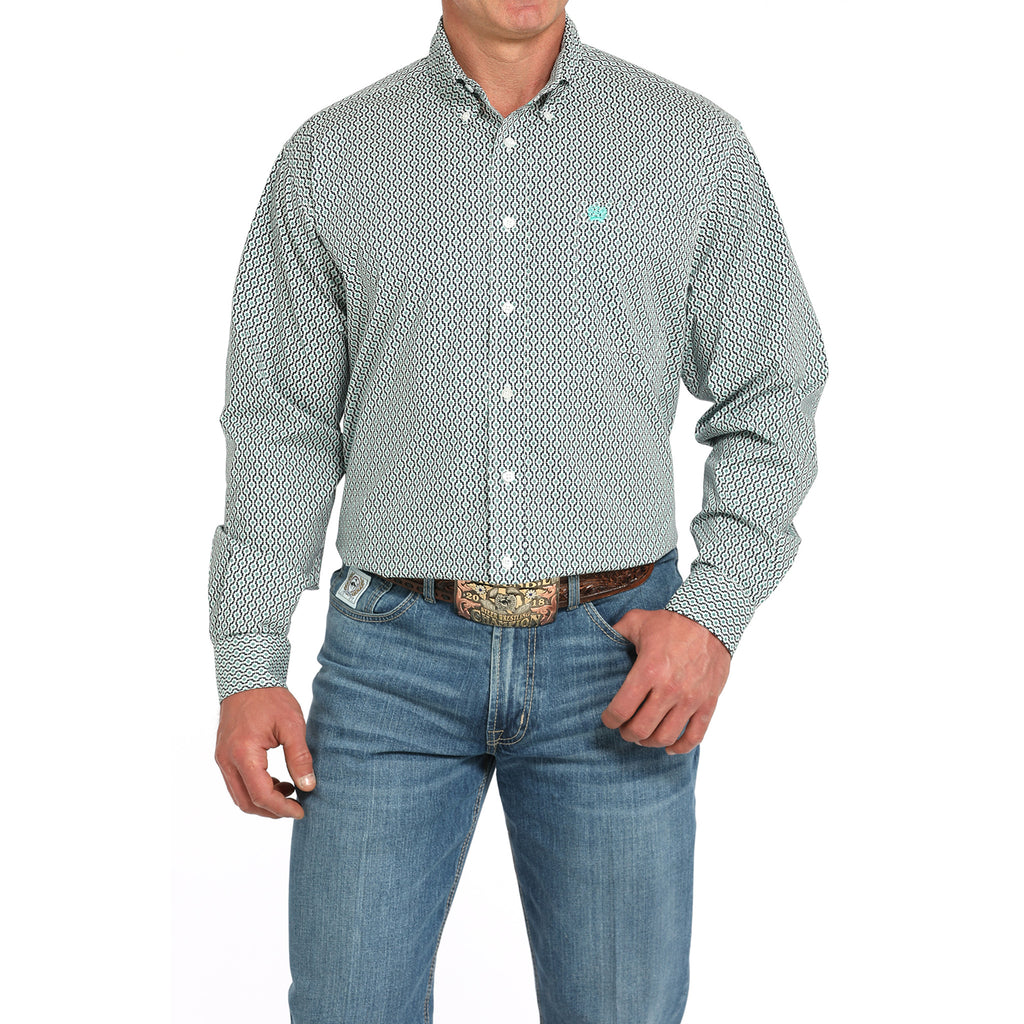 Elevate your wardrobe with the Cinch Men's Geo Long Sleeve Shirt, featuring a refined blend of white, turquoise, and navy geometric patterns. Crafted for both style and comfort, this shirt offers a polished look suitable for casual and semi-formal occasions. Its long sleeves provide versatility across seasons, making it a sophisticated choice for the modern man.