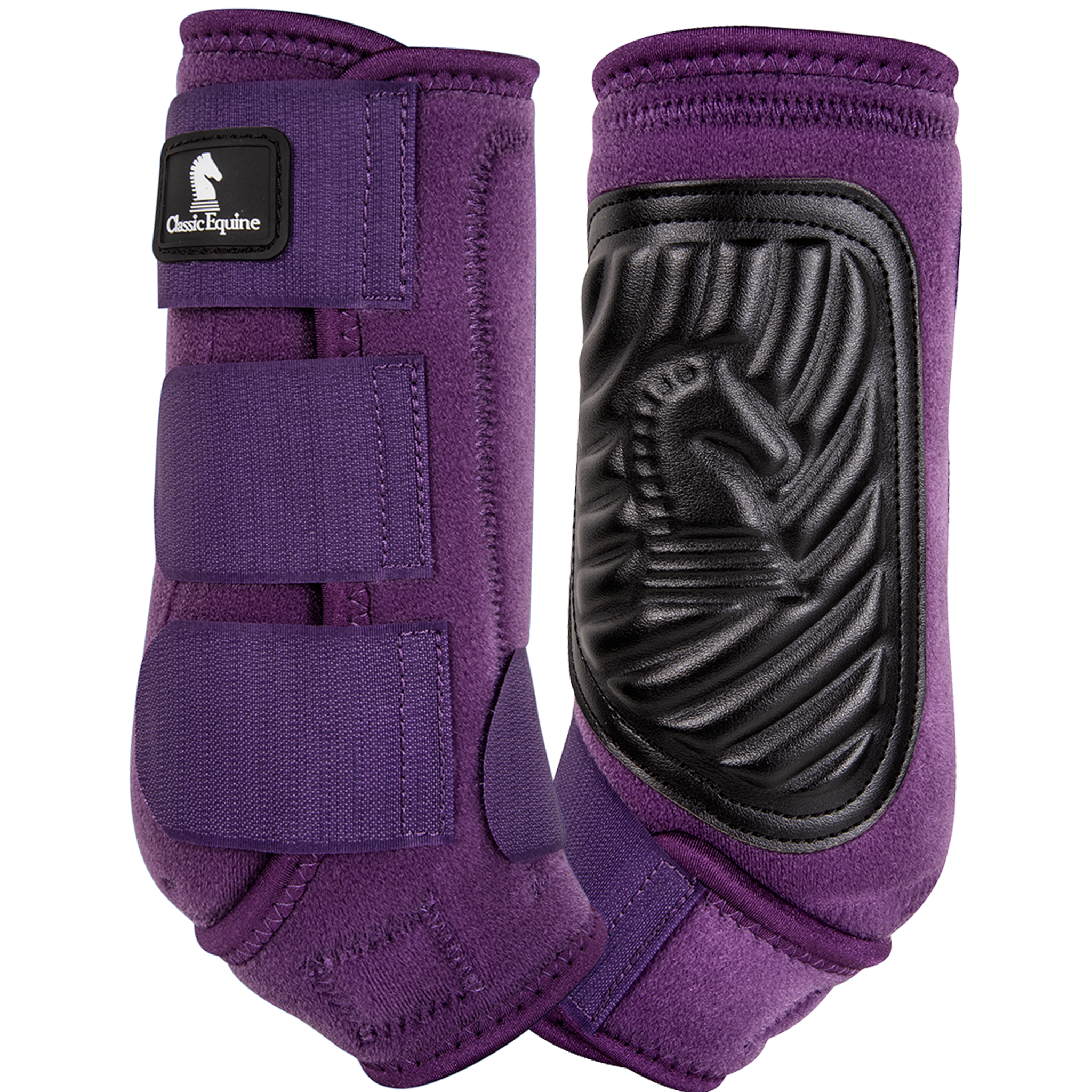 These Classic Equine ClassicFit splint boots have a sleek, modern fit that allows unrestricted and natural leg function with protection and support. The suspensory sling is uniquely positioned for correct angle alignment to ensure lower limb support. The tough outer pad provides extra strike protection while the laminated jersey lining is comfortable and will not fold, bunch or rub.