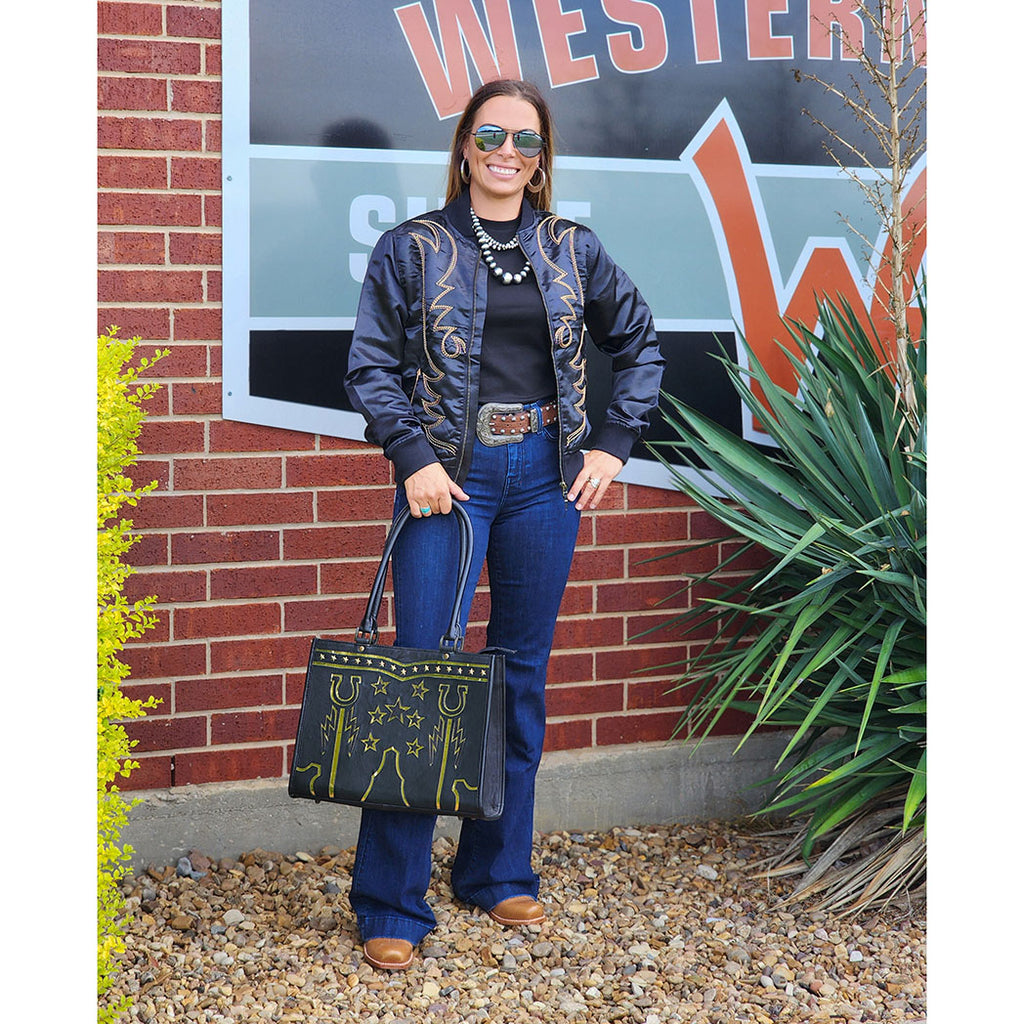 This Women’s Bomber Jacket in classic black is your new go-to for effortlessly cool style. Crafted for a flattering fit, it combines the iconic bomber silhouette with a playful edge perfect for day-to-night wear. Whether layered over casual tees or dressed up with accessories, it adds just the right amount of attitude to your outfit.