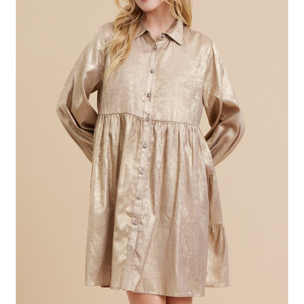 Jodifl Women's Solid Metallic Button Dress