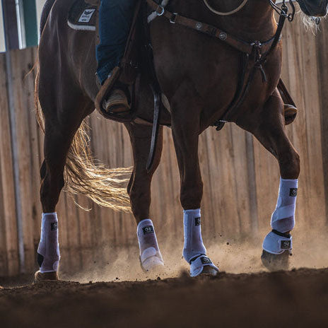 These White hind boots from Top Hand feature a 4 way stretch for a glove like fit, single layer seams along the leg for a closer gap free fit to keep dirt out.