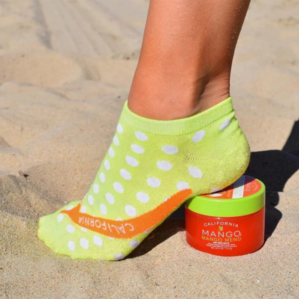 Indulge in a rejuvenating foot spa experience with our California Dreaming Foot Spa Kit. Our restorative treatment harnesses the power of sunflower, safflower, aloe, and jojoba to soften even the roughest, driest patches overnight. Slip on the Cali Cute Flip Flop Socks for maximum moisture and imagine walking on warm sands and cool waters. Wake up to softer, beautiful feet!