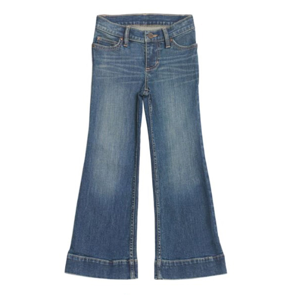 The Wrangler girls' trouser has plenty of style made to keep her comfortable all day long. The adjust-to-fit waistband (in sizes 4-6X) is designed to fit her needs by helping her get her perfect fit, even as she grows. Hip pocket embroidery, classic five-pocket styling, and a trouser leg opening that's slightly wider than a bootcut for a style she'll want to wear every day of the week.