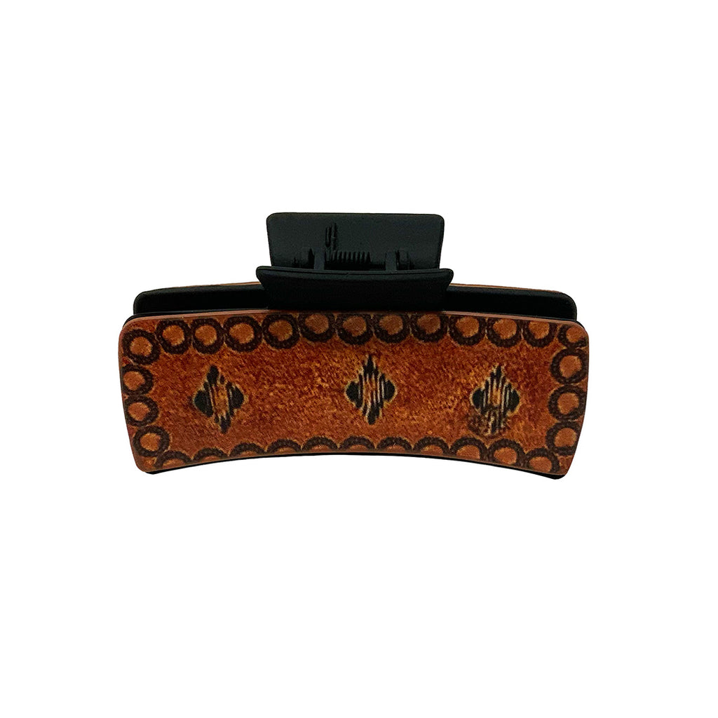 Elevate your hair game with the Tooled Traditions Claw Clip! Crafted with intricate tooling, this clip is a stylish and secure way to hold your hair in place. Say goodbye to flyaways and hello to effortless elegance. Perfect for all hair types, this clip will elevate any look!