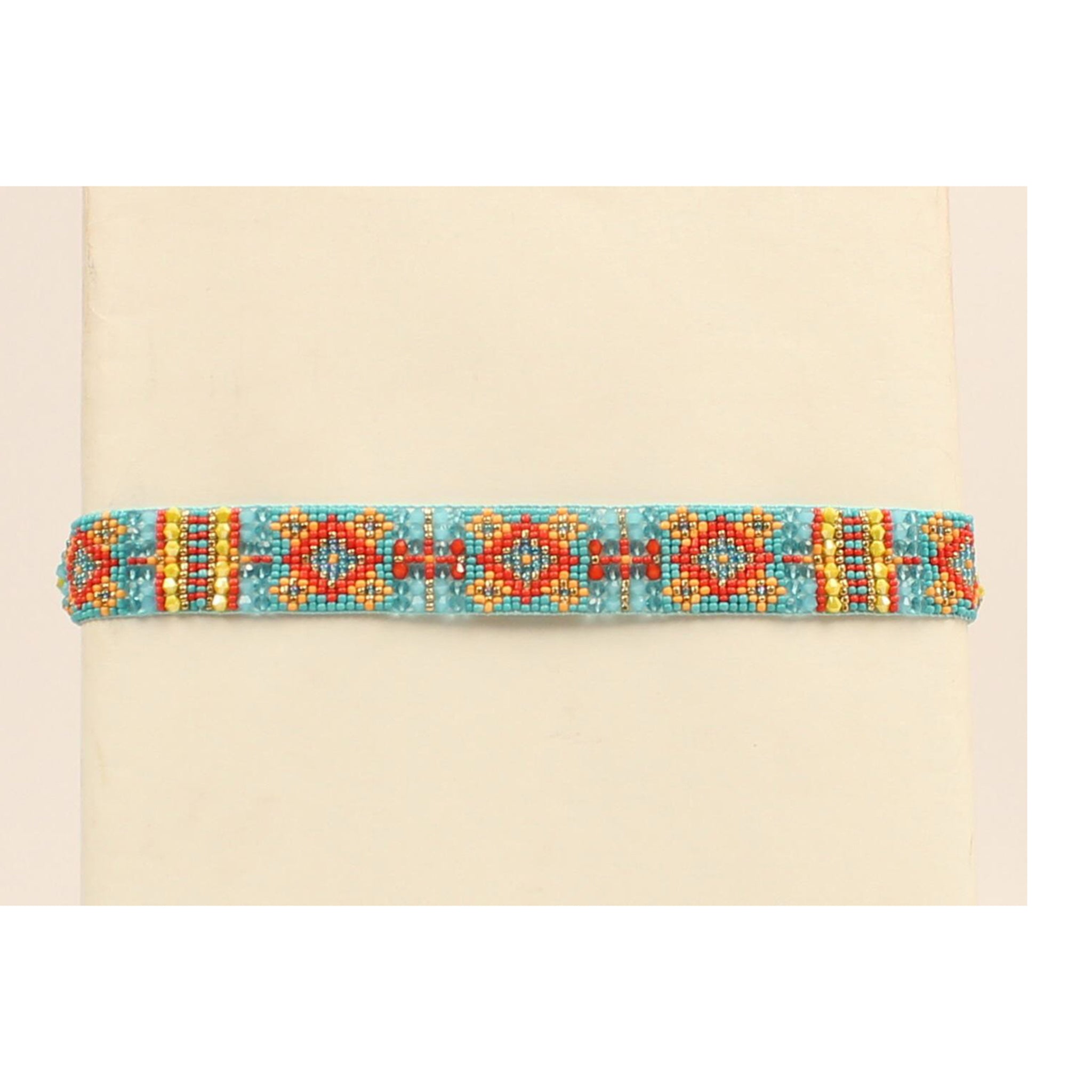 Stand out with this vibrant Blazin Roxx Aztec headband featuring bold multicolored beaded patterns. The eye-catching design brings authentic southwestern flair to your western wardrobe. Comfortable and stylish, it's the perfect accessory for anyone who loves traditional cowboy culture.