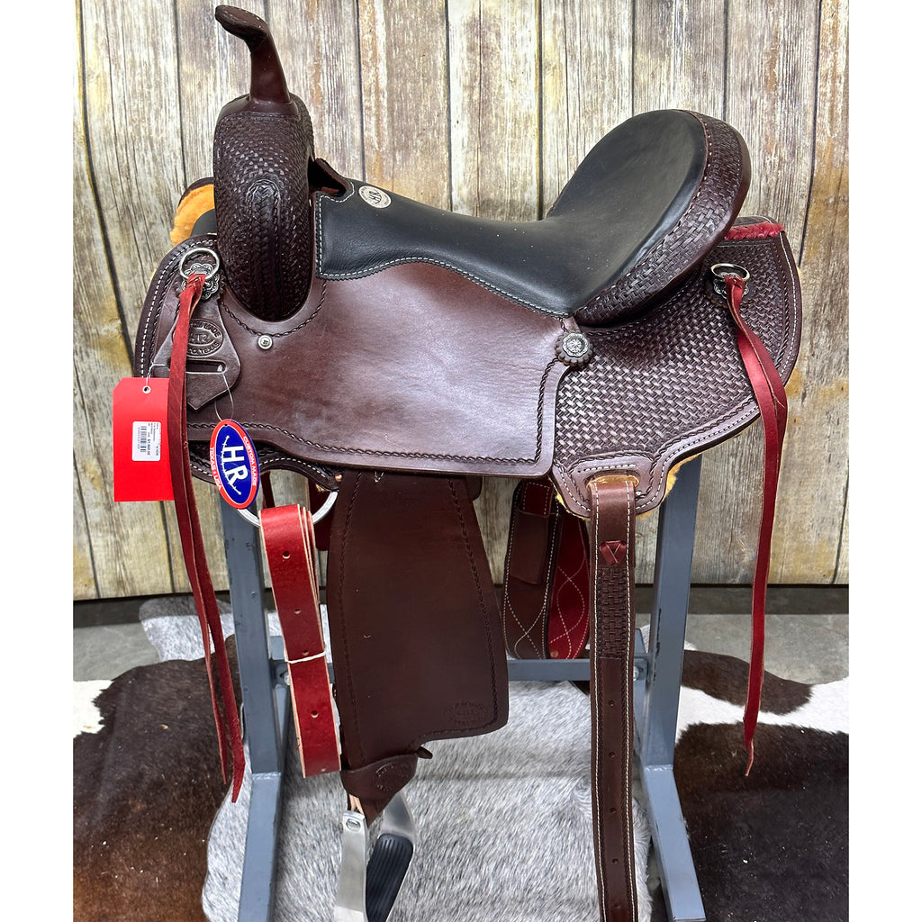 Experience the ultimate in trail riding with HR Saddlery's HR 16 inch Modified Draft tree Trail Saddle! The elegant chocolate leather and accent strings add a touch of eye-catching style, while our specially designed modified draft tree caters to draft horses, draft crosses, and modern wide-shouldered horses. You'll be ready to lead the pack and conquer any trail with this unique saddle.