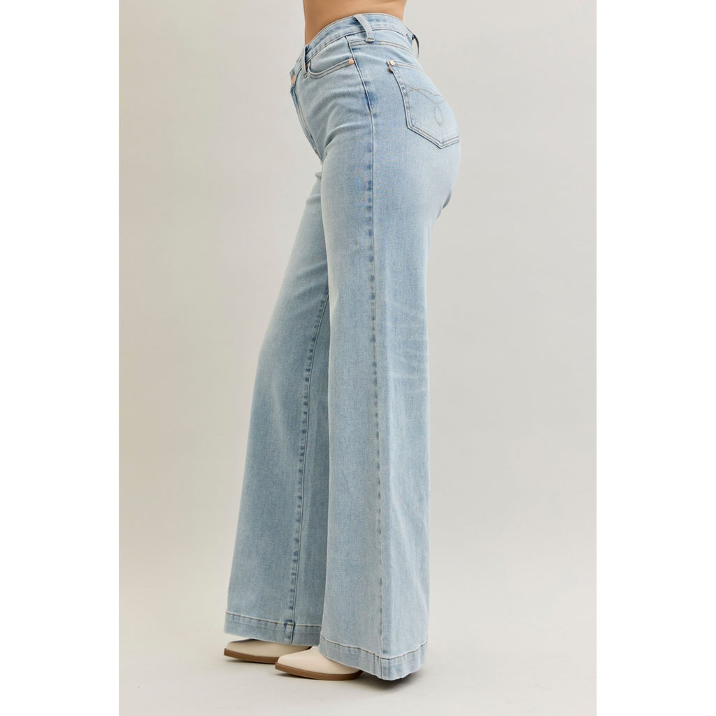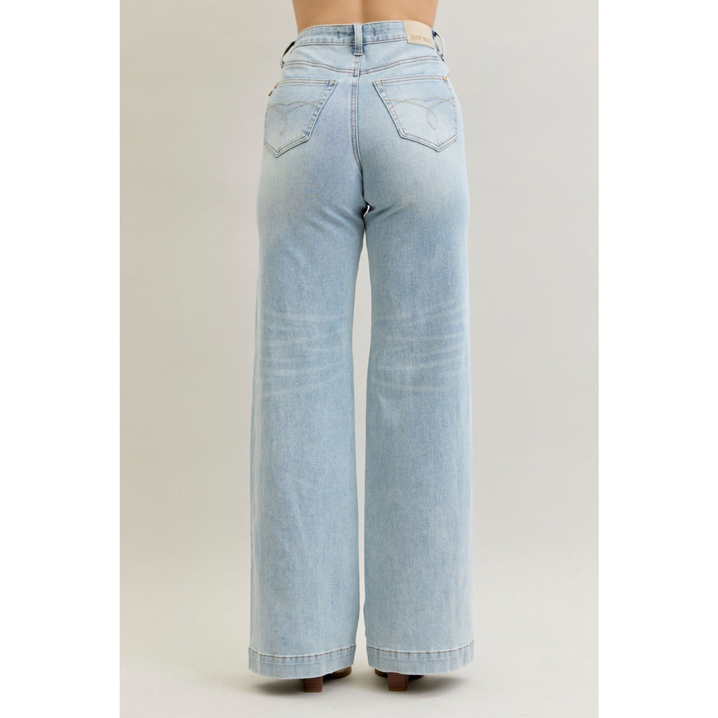 Step into fun and flair with these Judy Blue Jeans! Designed to hug your waist with a unique crisscross detail, they mix comfort and style effortlessly. The wide leg cut adds a breezy, playful vibe perfect for showing off your moves all day long. Elevate your denim game and turn heads wherever you go!