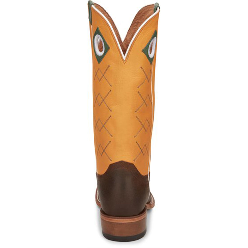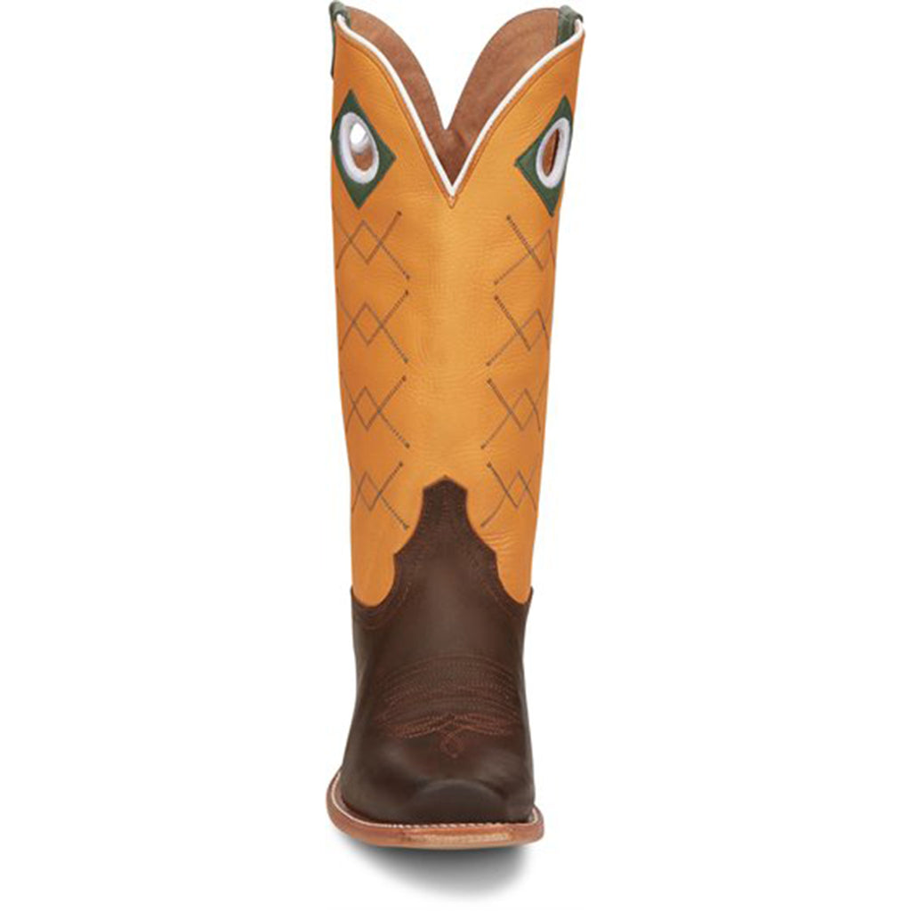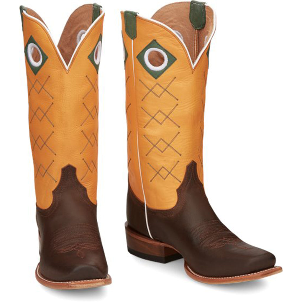Like the sun you rise with, the Billet in Mocha Brown never takes a day off. Sure-footed in your convictions and your style, you deserve a pair of boots as confident as you. A vibrant upper in Sunrise Orange cowhide marries with green pull holes and straps to complement the Mocha Brown cowhide vamp.