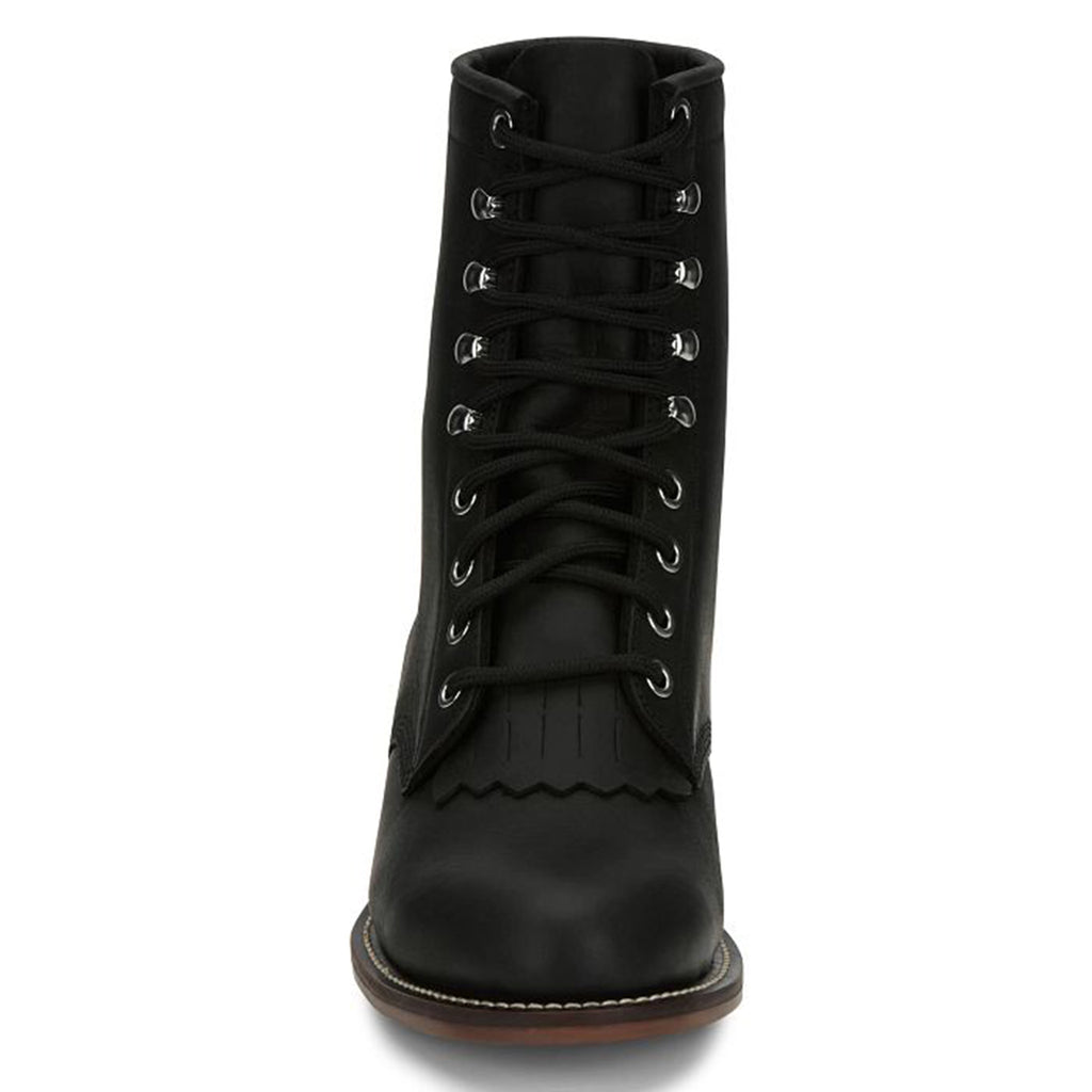 Take on the day with confidence in the Justin Women's Mckean Black Lace-Up Roper boots. These stylish and practical boots are designed to keep you comfortable and supported all day long. With their sturdy lace-up design, you can trust these boots to take you from work to play in style.
