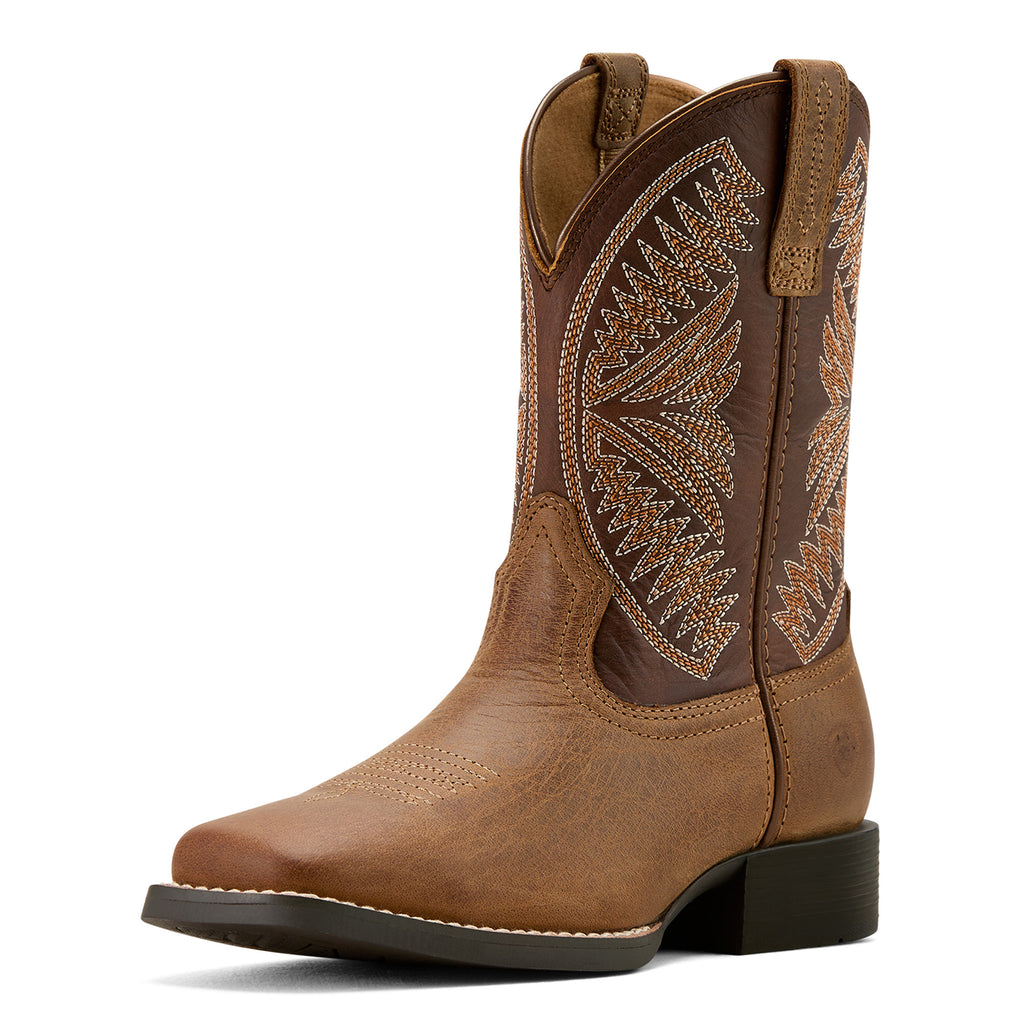 These rugged boots blend authentic western heritage with kid-friendly comfort, featuring a rich chocolate brown finish that pairs with everything in their closet. Whether they're conquering the ranch, hitting the rodeo circuit, or just channeling their inner cowpoke, these boots deliver the durability and style that keeps pace with their wild spirit. Ariat quality means they're built to last through countless escapades.