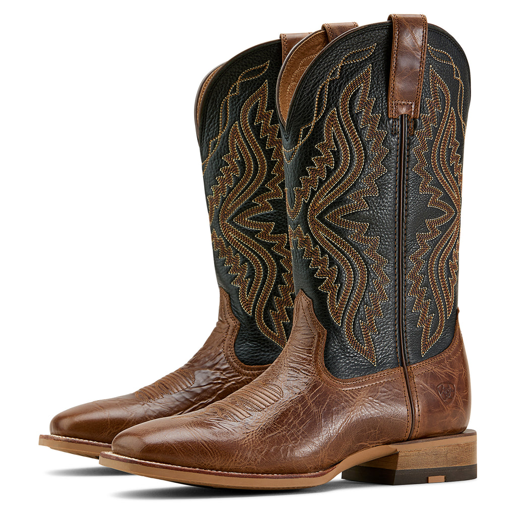 Elevate your style with the Ariat Men's Dark Tan & Black Baxter Square Toe Boots. These boots combine a sleek dark tan and black design with a square toe for a modern look. With Ariat's premium quality construction, you can expect comfort and durability. Perfect for any occasion.