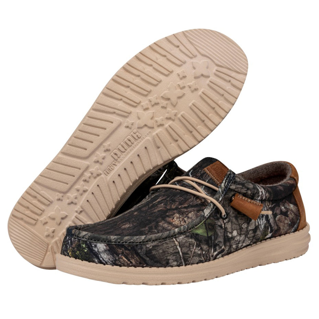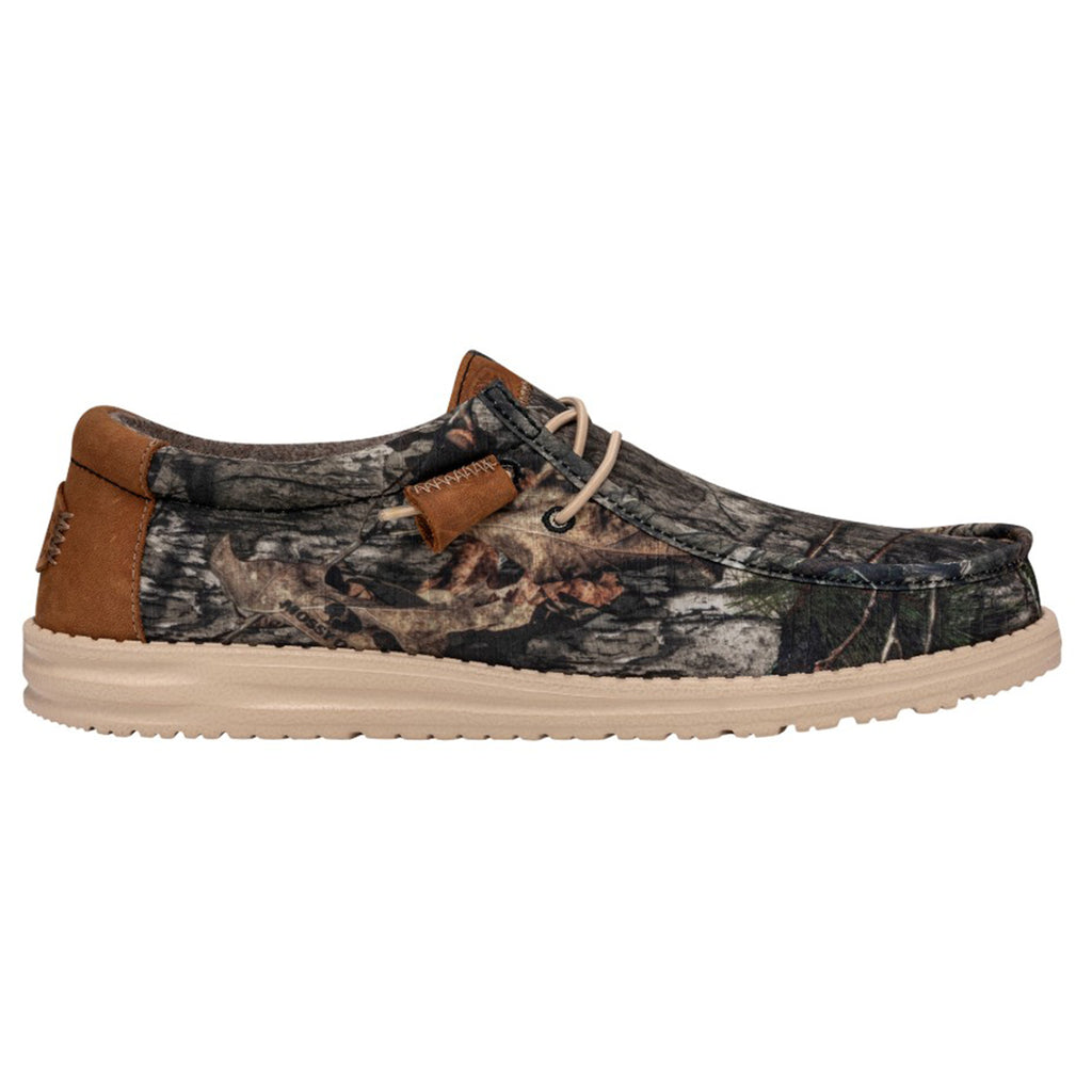 The Hey Dude Men's Wally Mossy Oak Camo shoes combine lightweight comfort with a classic hunting camouflage design. Perfect for long days in the field, they offer breathable support and flexible soles to keep you agile and quiet on your next outdoor pursuit. Durable and practical, these shoes are built to blend seamlessly into natural surroundings while providing reliable comfort.