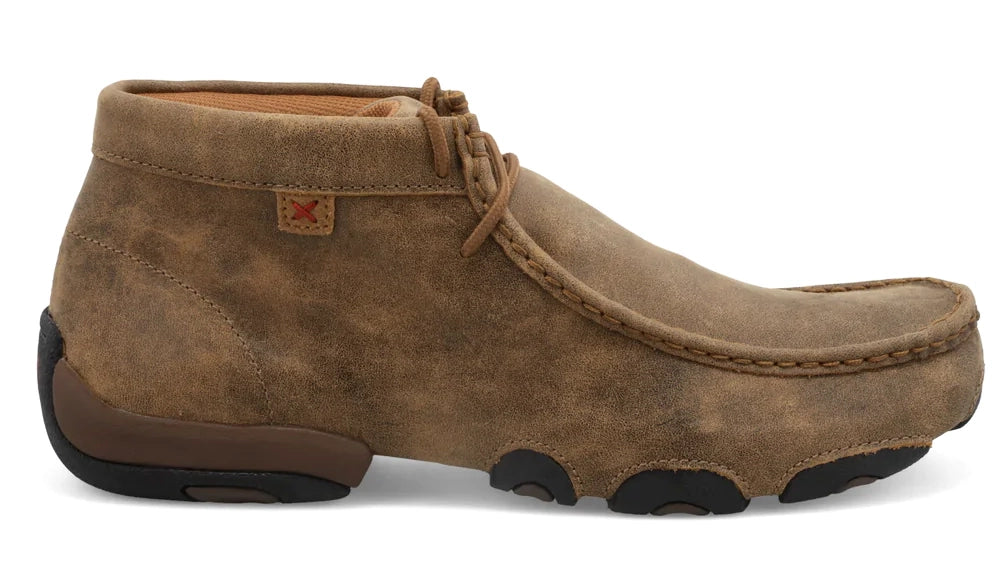 Twisted X Men's casual chukka driving Moc is the true Twisted X® original! Handcrafted in full-grain leather, the chukka driving Moc blends together a open-laced profile with a leather-wrapped outsole and Moc toe design. It features a molded footbed, three-quarter length composite insole, and the Twisted X® driving Moc outsole.