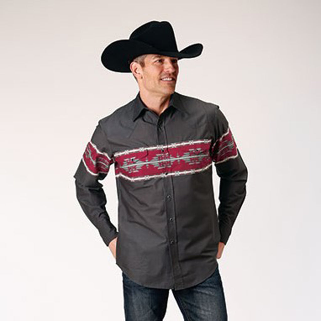 Roper Men's Black & Red Aztec Border Shirt