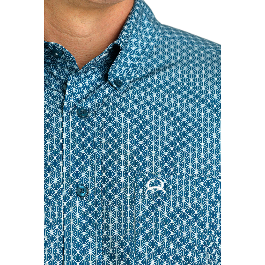 Strut your stuff with the best in the Arenaflex by Cinch. Its poly-spandex construction provides increased range of motion, that include an open left front pocket, embroidered logo and turquoise buttons.