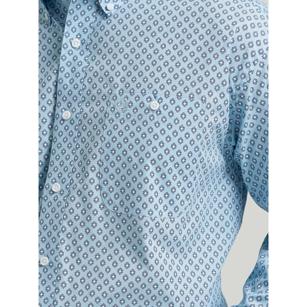 Wrangler Men's George Strait Blue Geo Print Long Sleeve Button Down
