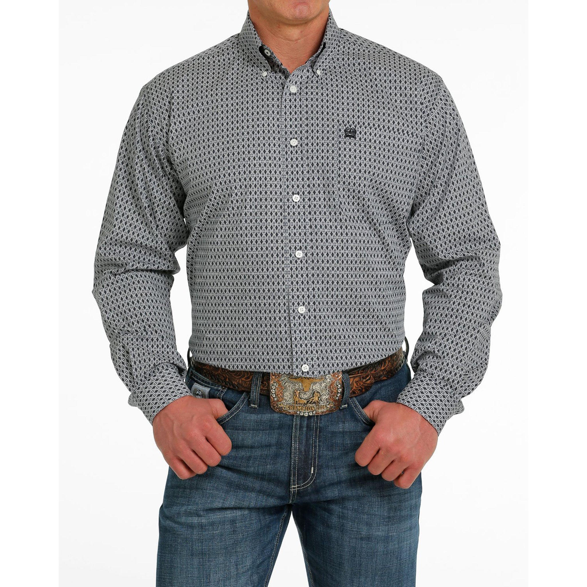 Cinch Men's Grey Geometric Pattern Shirt