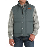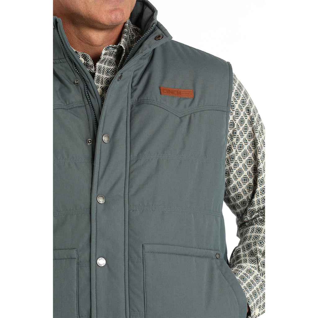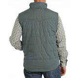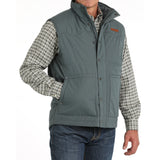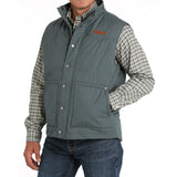 This blue quilted vest by Cinch will keep you warm and stylish. Perfect for layering, it's made with soft and protective poly-cotton fabric and lined with cozy polyester fleece. It also has a storm flap, pewter snaps, handy pockets, a cool logo label, and a Durable Water Resistant (DWR) finish.