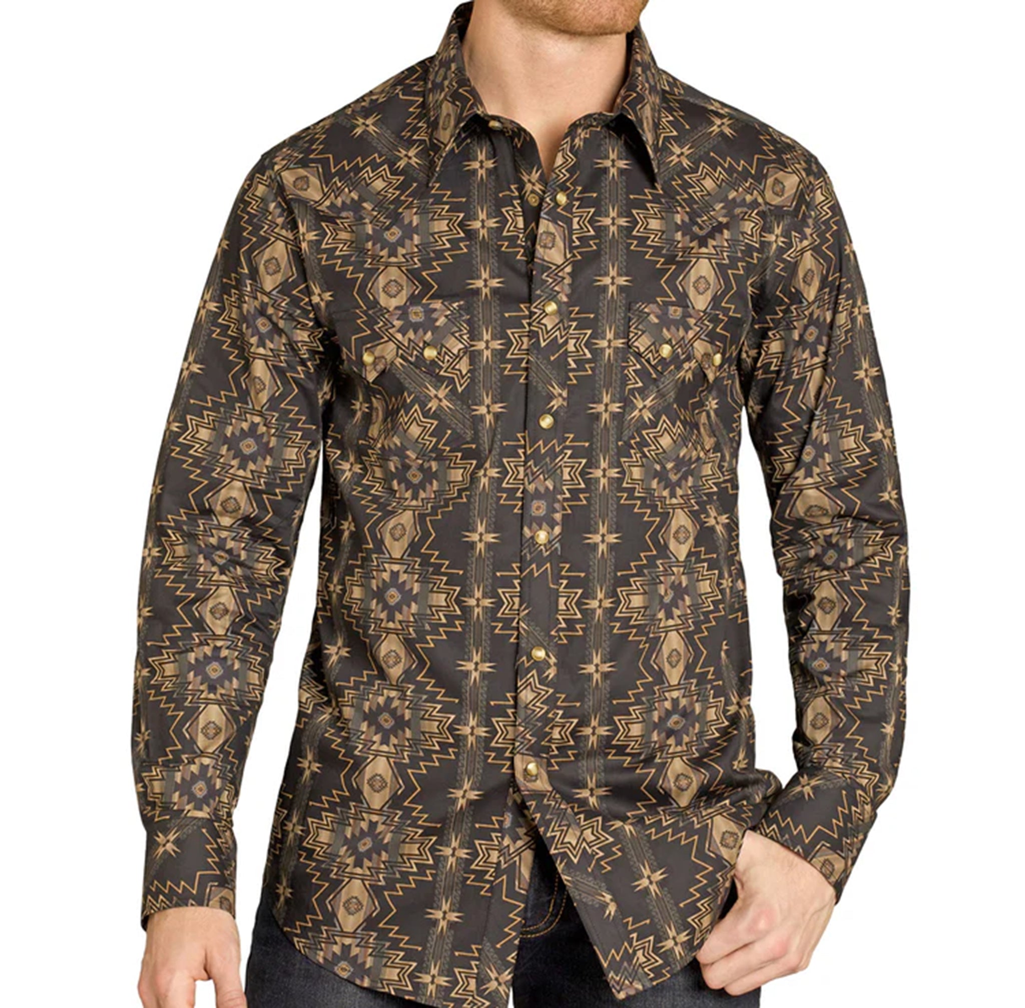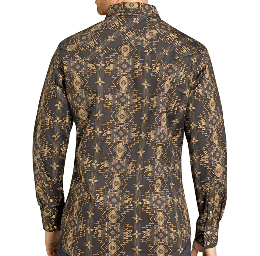 Black and Gold Pearl Snap Shirt for Men