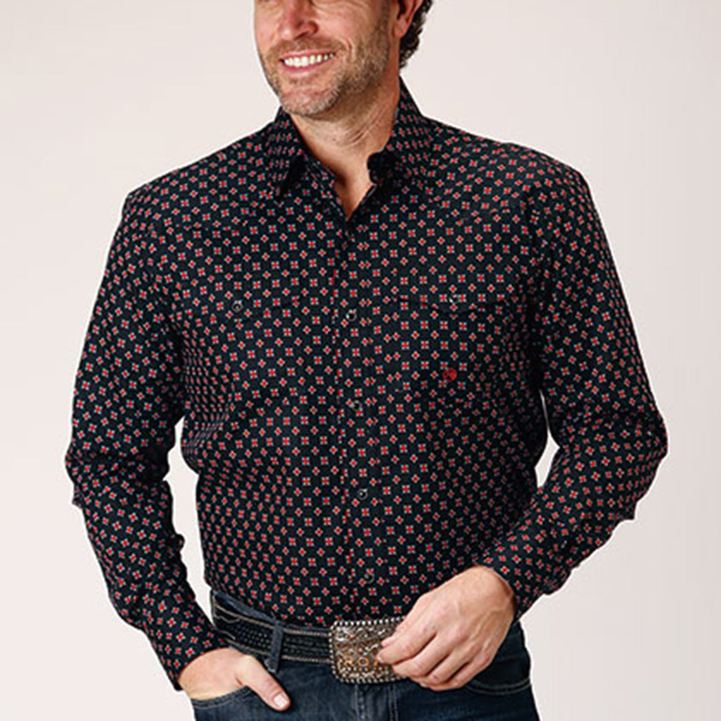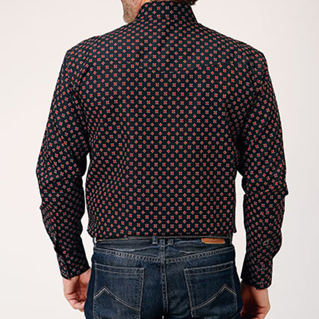 Embrace the bold sophistication of our Men's Black Cottage Foulard Long Sleeve Shirt. This striking piece features an intricate foulard pattern that commands attention while maintaining timeless elegance. The classic black palette pairs effortlessly with any wardrobe, making it a fearless choice for those who refuse to blend in.