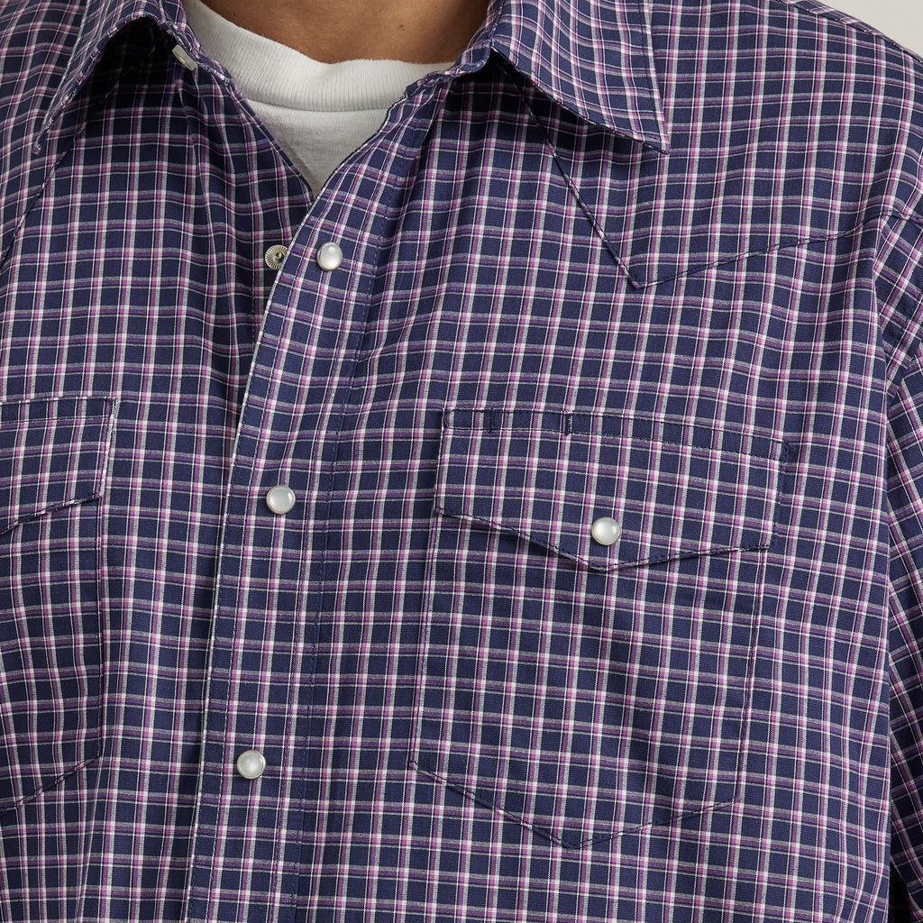 Wrangler Men's Navy/Purple Plaid Wrinkle Resistant Long Sleeve