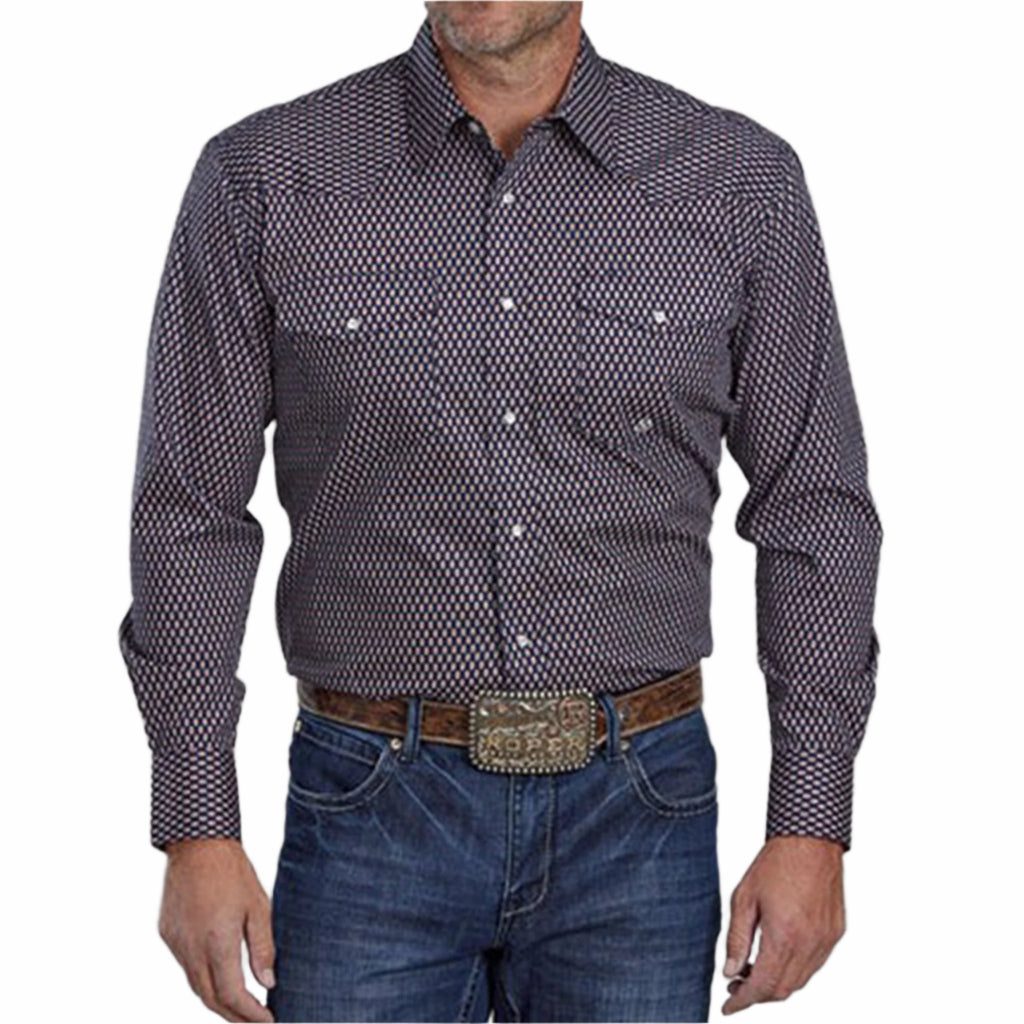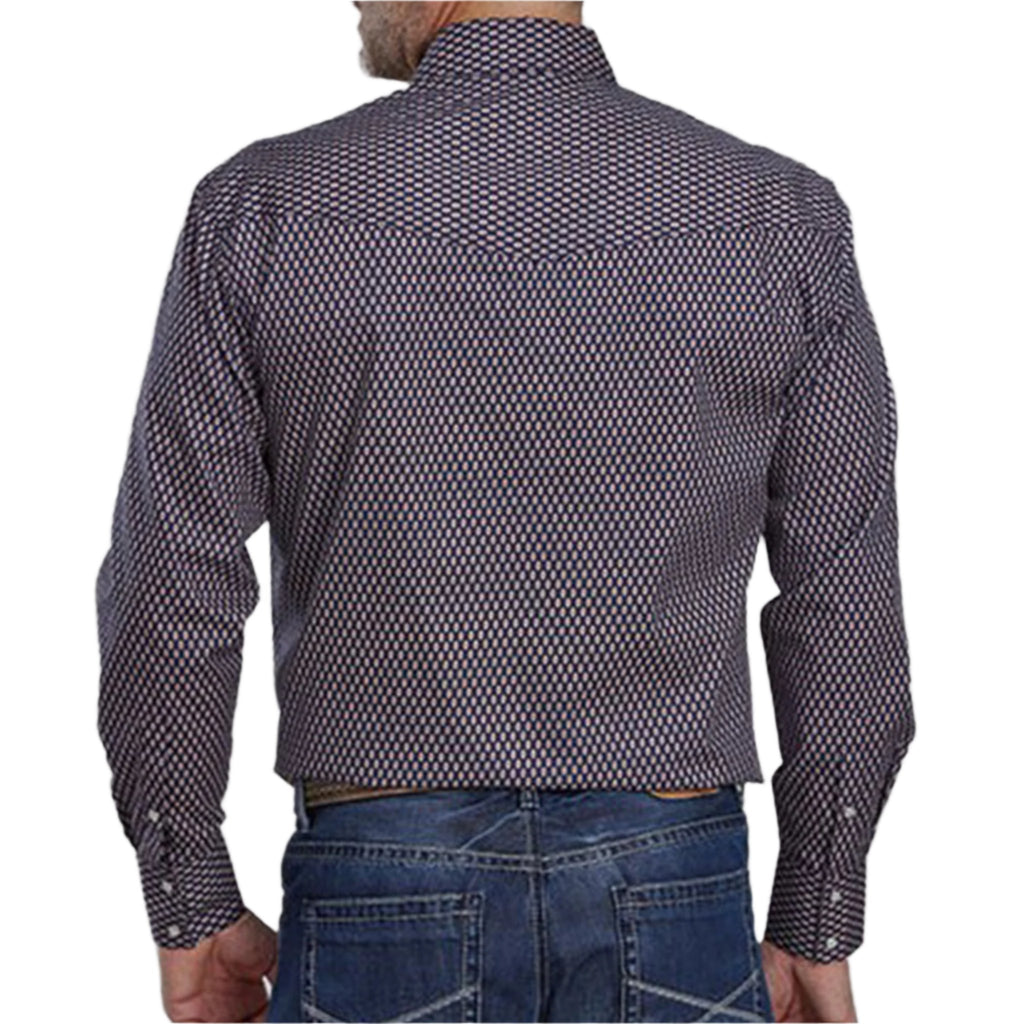 This Roper Men's long sleeve button down will be the talk of the town. Its Navy and orange diamond eye geo pattern are the epitome of cool, while the light and airy fabric will keep you comfy and stylish all day long. Round up this shirt now and get ready to make a statement!