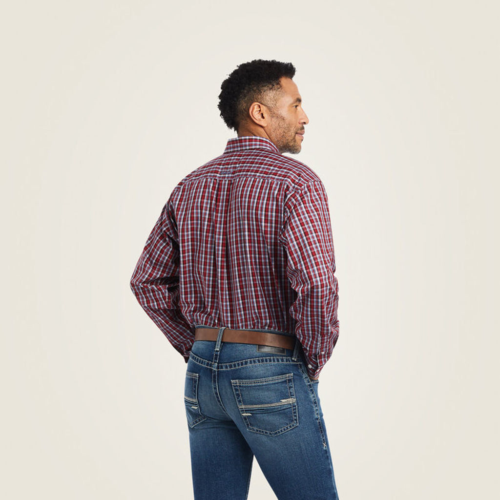 Red Plaid Long Sleeve Button Down for Men